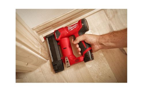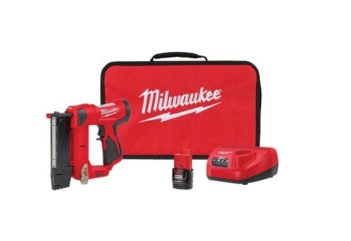 The MILWAUKEE M12 23 Gauge Pin Nailer Kit features the most compact cordless pin nailer, combining precision and power to deliver the performance that professional carpenters and remodelers demand, without the hassle of a compressor hose or gas cartridge. The 23 gauge pin nailer provides users with unmatched productivity and accessibility in tight spaces and confined corners with a lightweight, ergonomic design. The nitrogen air spring mechanism allows the nailer to consistently sink pin nails at proper depth into hard or softwoods while leaving small, clean nail holes. The double-action trigger and non-marring precision point tip allow users to perform sequential driving and accurate pin placement into delicate trim pieces. The dry-fire lockout feature prevents misfires and workpiece damage. The M12 Pin Nailer drives 23-gauge headless pin nails ranging in length from 1/2" to 1-3/8" and features all-day run time with up to 750 pin nails per charge when paired with an M12 REDLITHIUM CP1.5 battery pack.