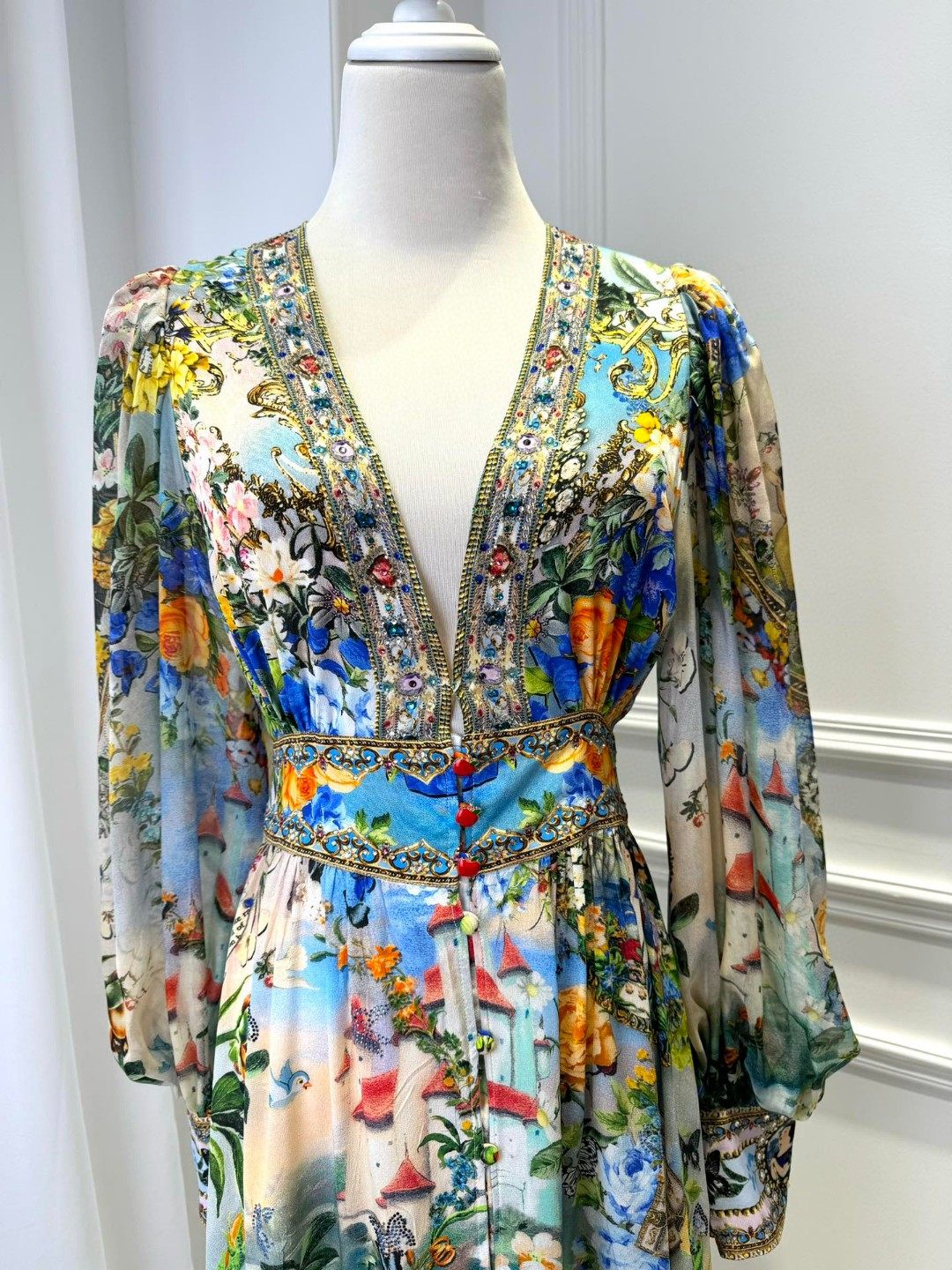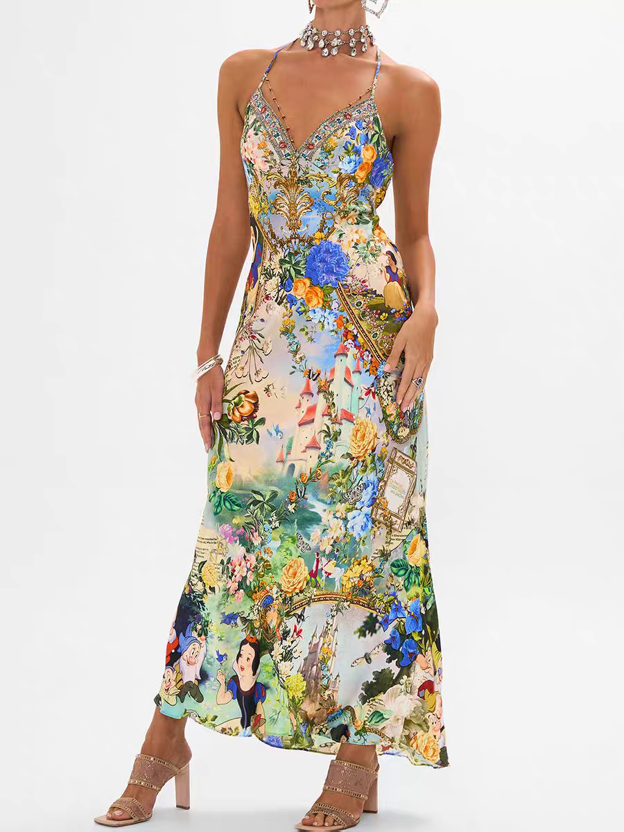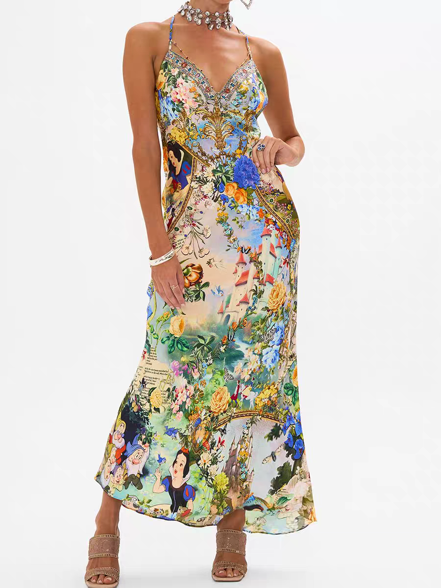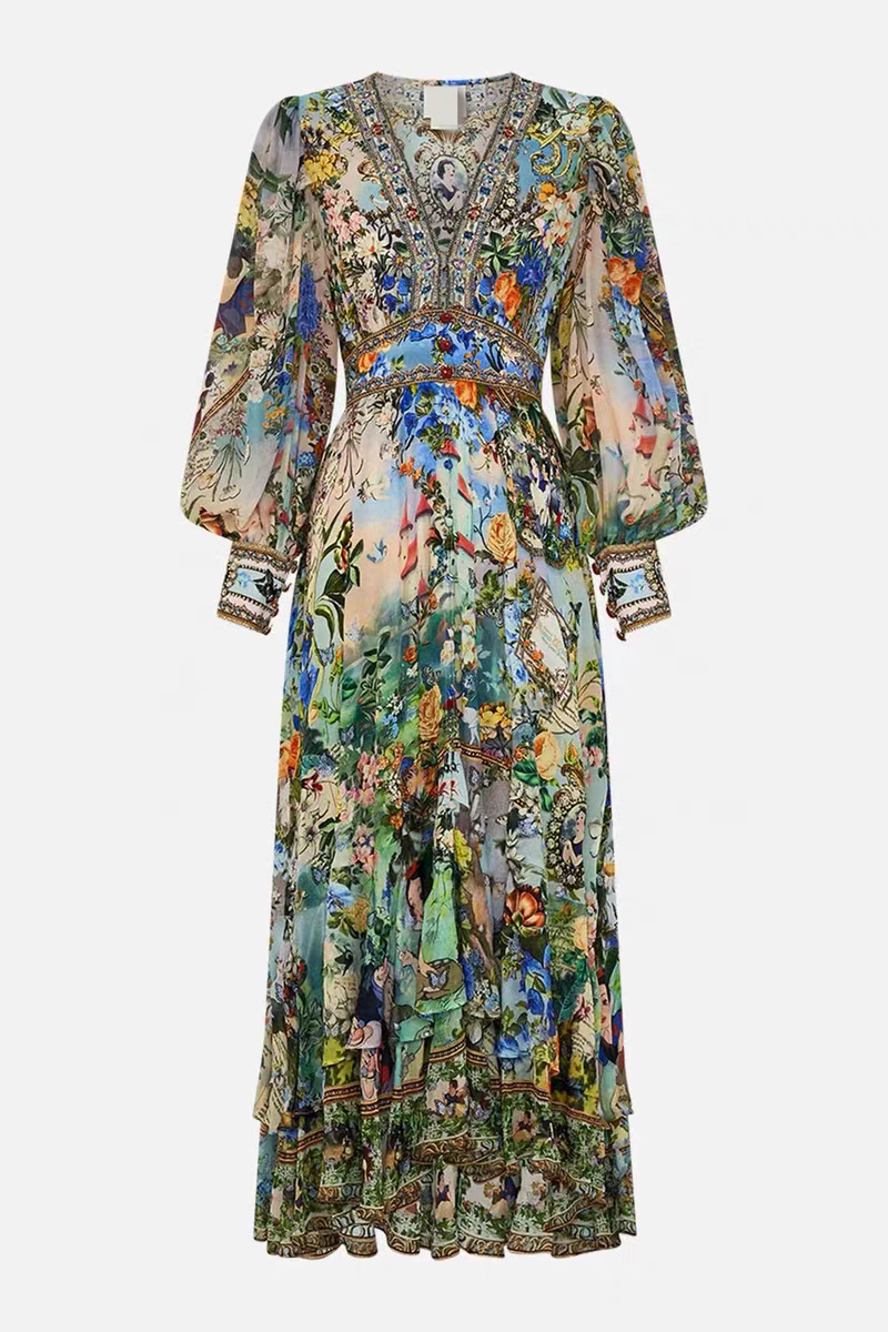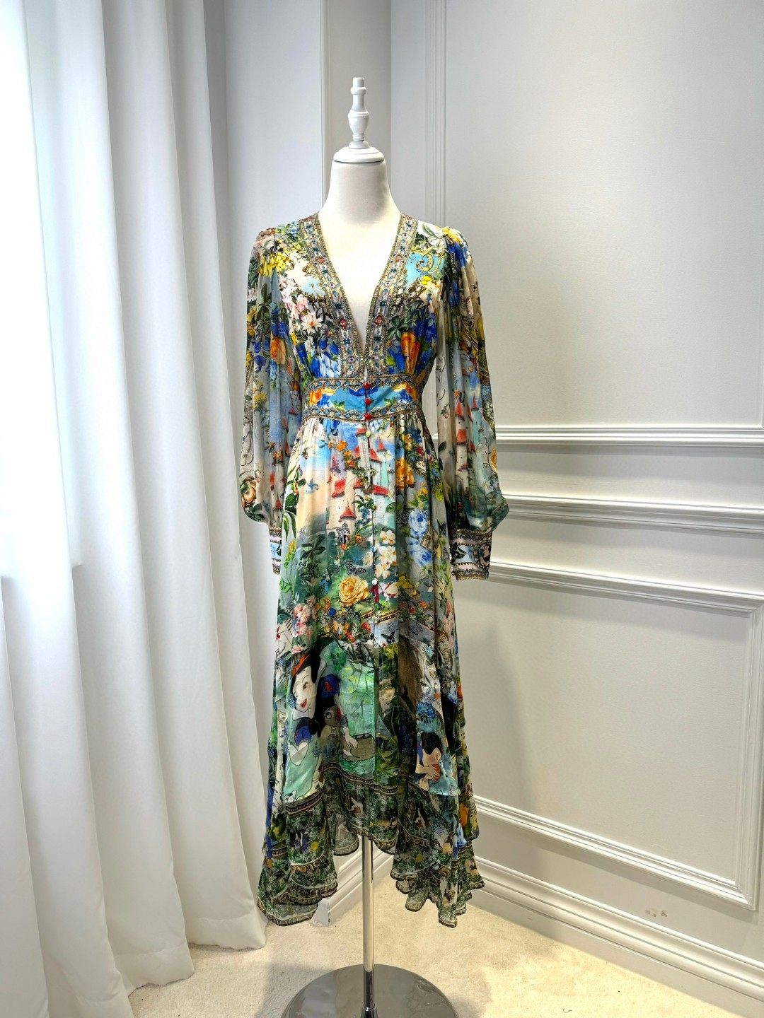 Camilla 100% Silk Beach Vacation High-end Style V-neck Women Dress