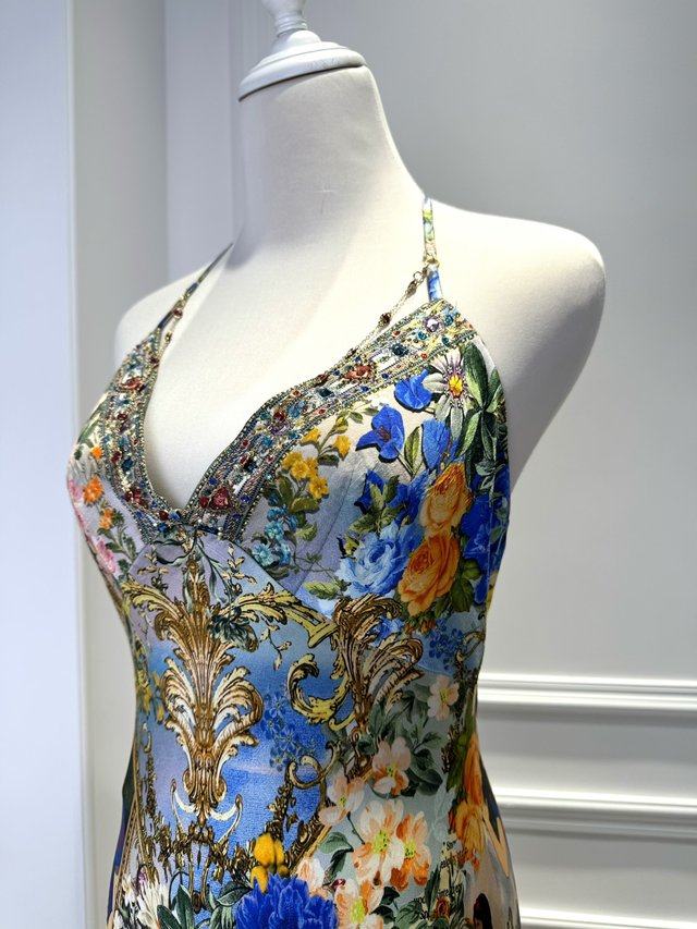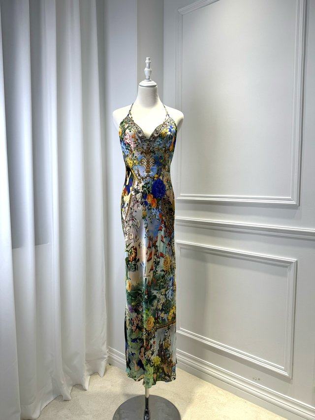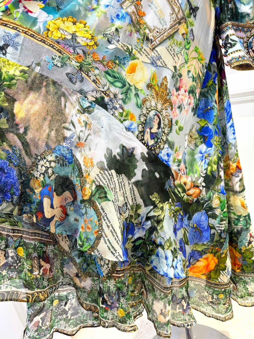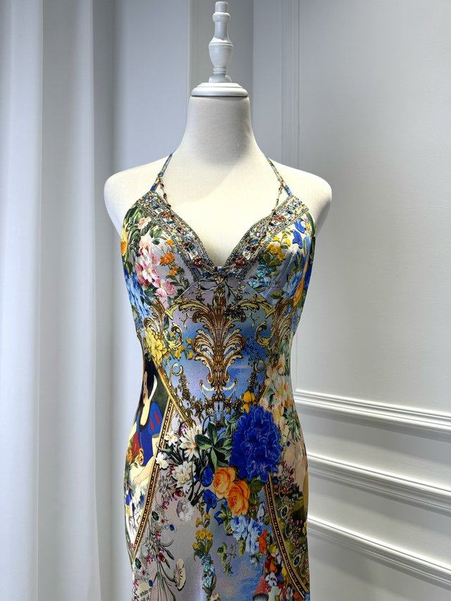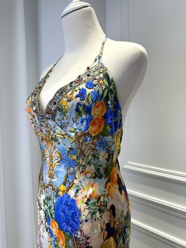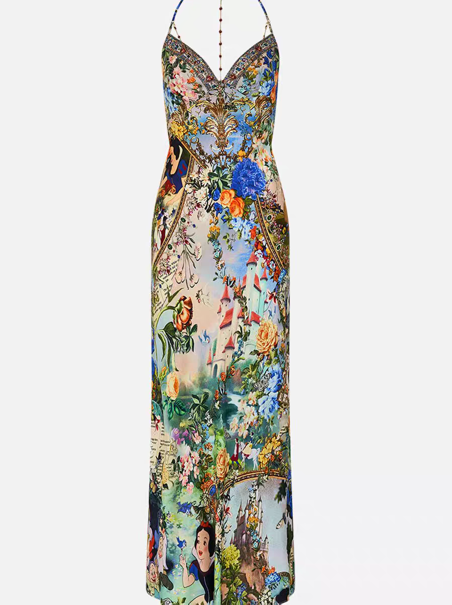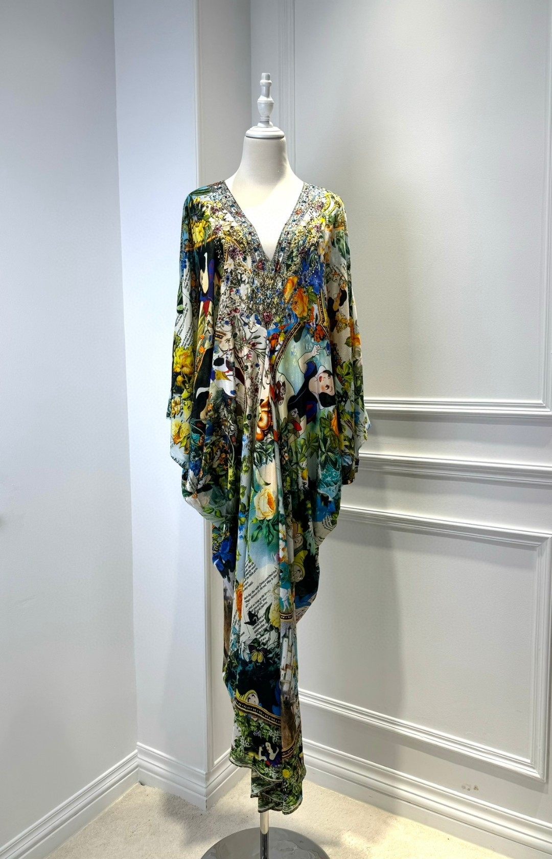 Camilla 100% Silk Beach Vacation High-end Style V-neck Women Dress