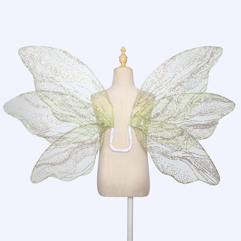 The glittery material decoration adds a touch of sparkle and glamour, making the wings a standout accessory for any event.