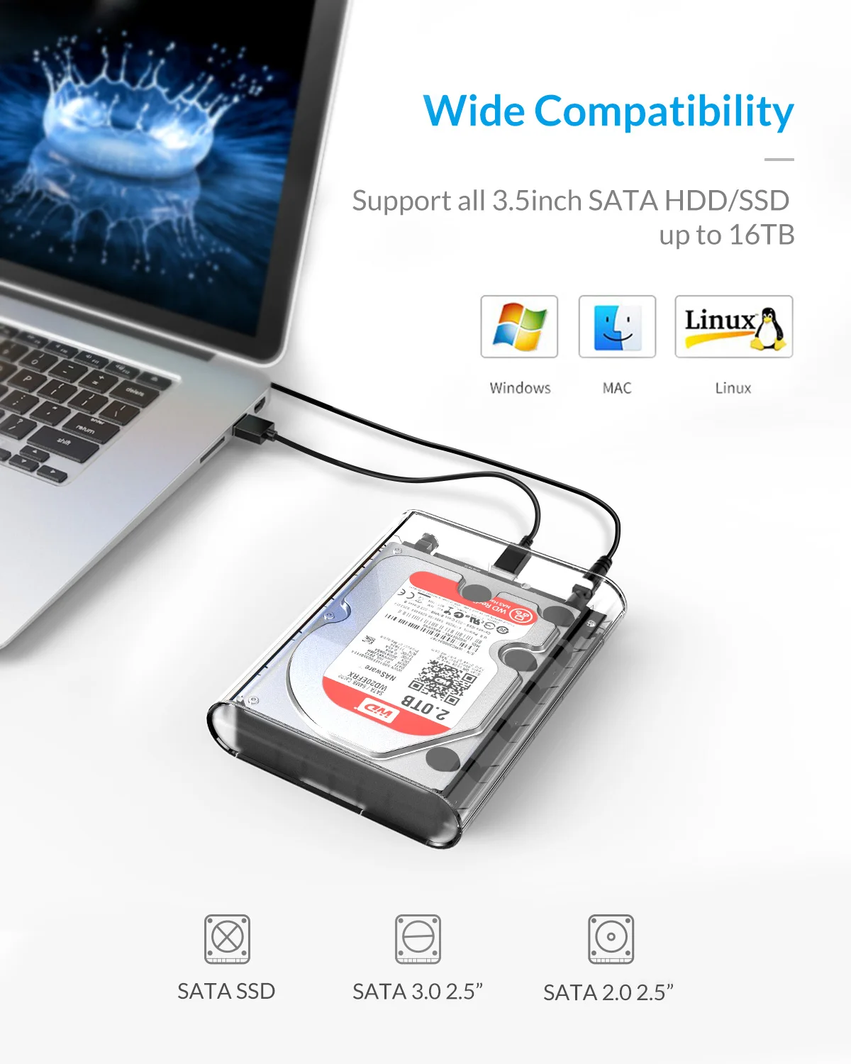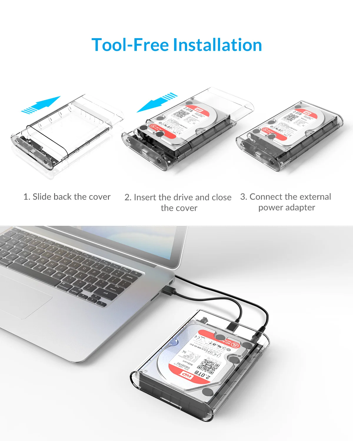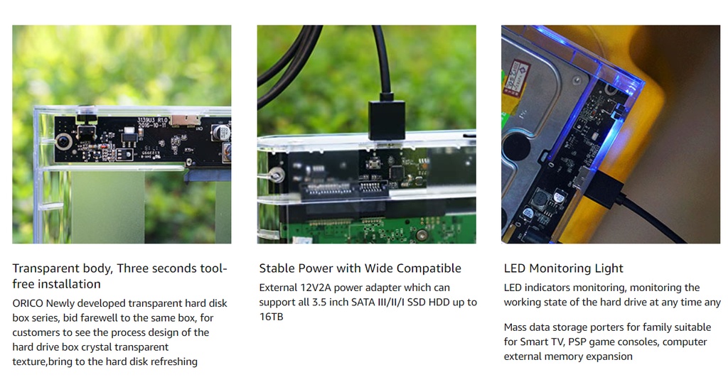 ✔[3.5" External HDD Enclosure] -- ORICO usb3.0 enclosure can support all 2.5" 3.5" SATA II/II/I SSD HDD hard drives, suitable for any brand, 3.5" drive enclosure can protect your hard drive from scratches , and provide a safe and dry environment for the hard drive to protect your precious data