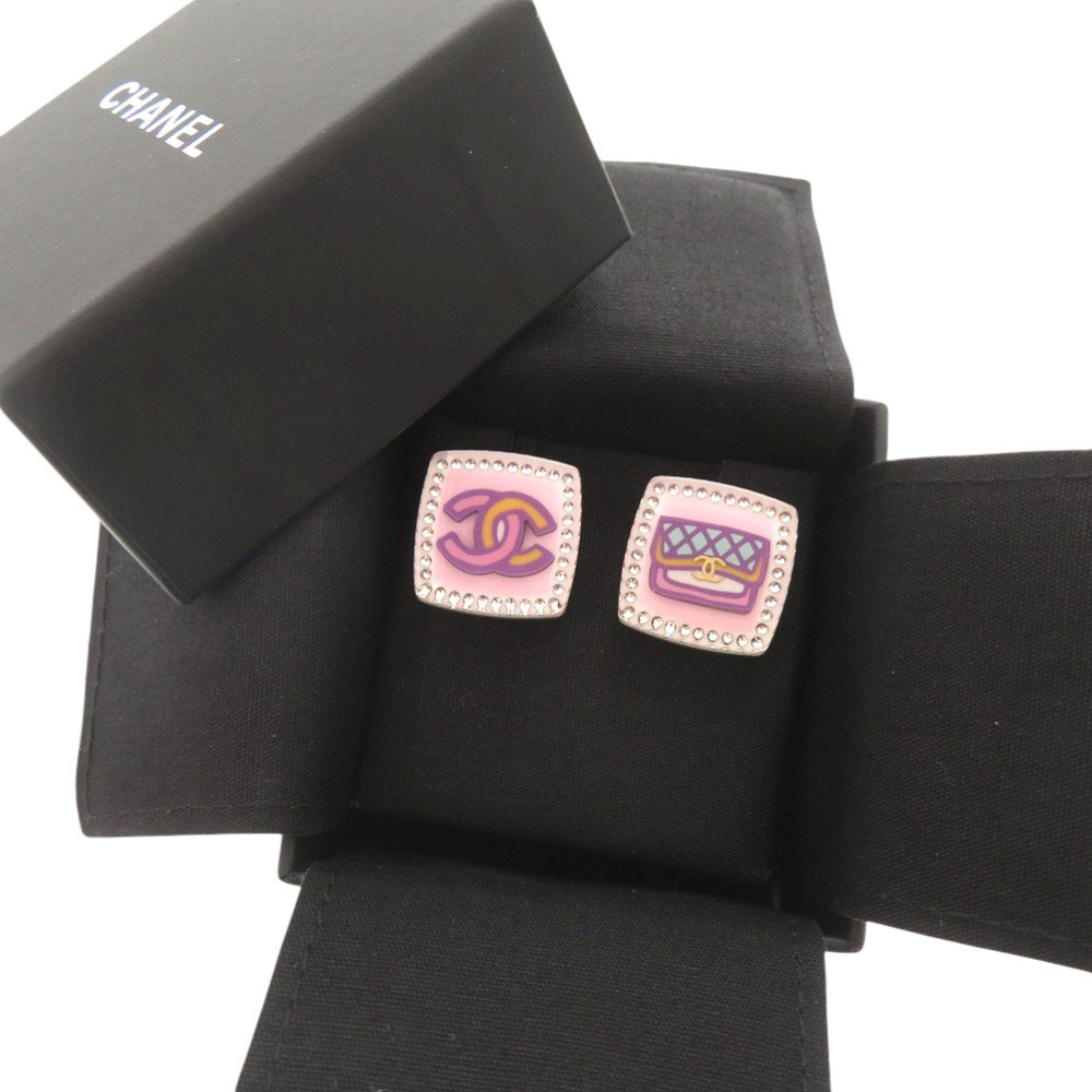 AUTHENTIC CHANEL CC Mark Matelasse motif Pierce pink plastic/Rhinestone