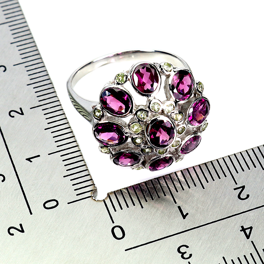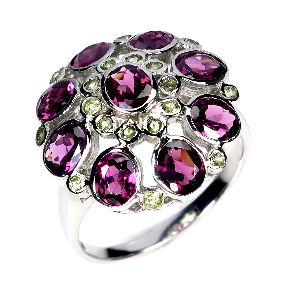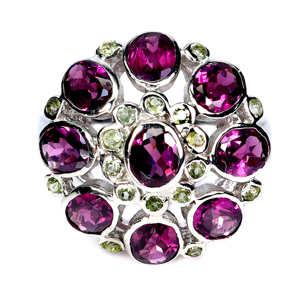 925 Sterling Silver Ring Oval Rhodolite Peridot Natural Gemstone Jewelry Size 9