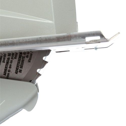 • Durable blade shield with integral chip tank deflects/collects hot chips and sparks