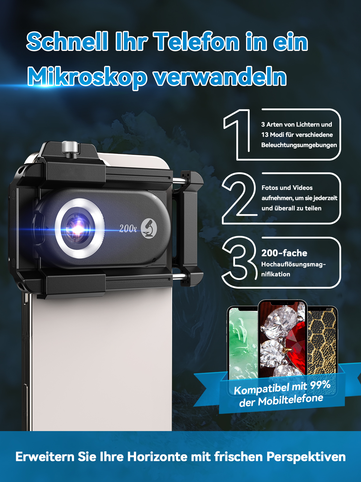1. Securely attach the lens to your phone's camera.