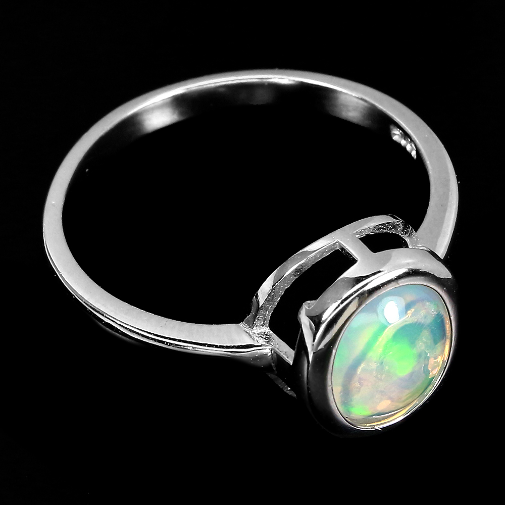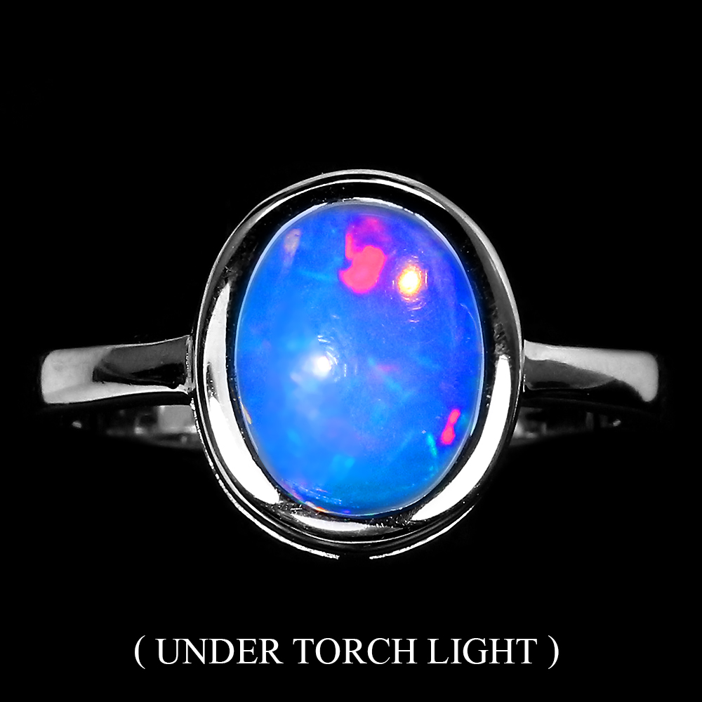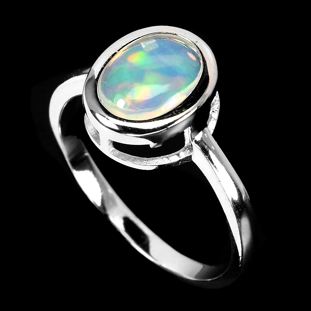 Unheated Oval Fire Opal Rainbow Full Flash 10x8mm 925 Sterling Silver Ring