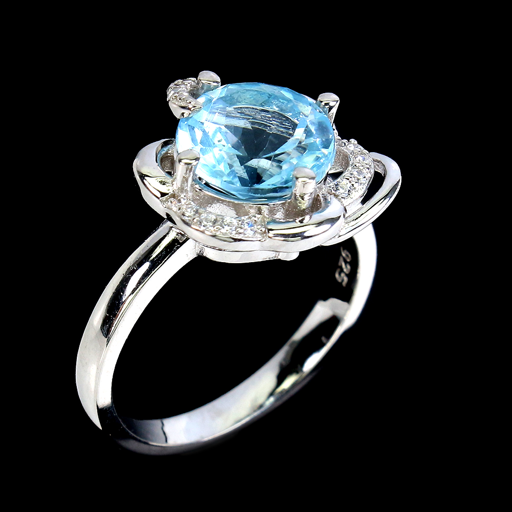 Irradiated Round Sky Blue Topaz 8mm Simulated Cz 925 Sterling Silver Ring