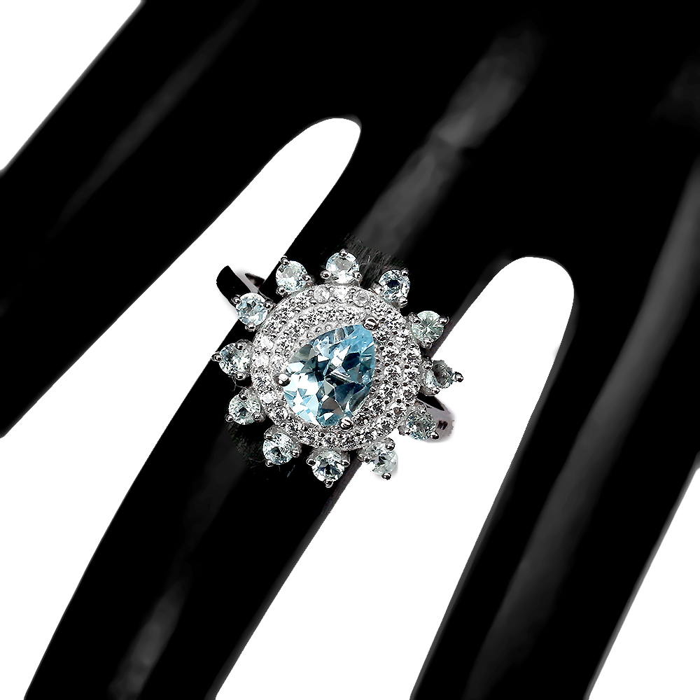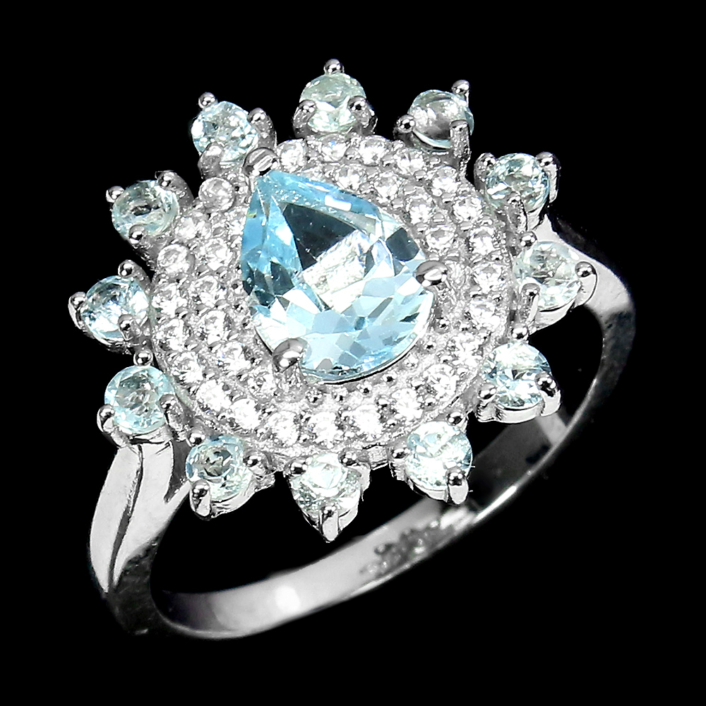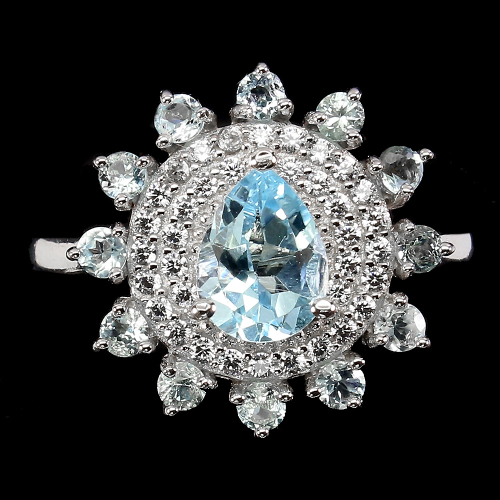 Irradiated Pear Sky Blue Topaz 8x6mm Simulated Cz 925 Sterling Silver Ring 8