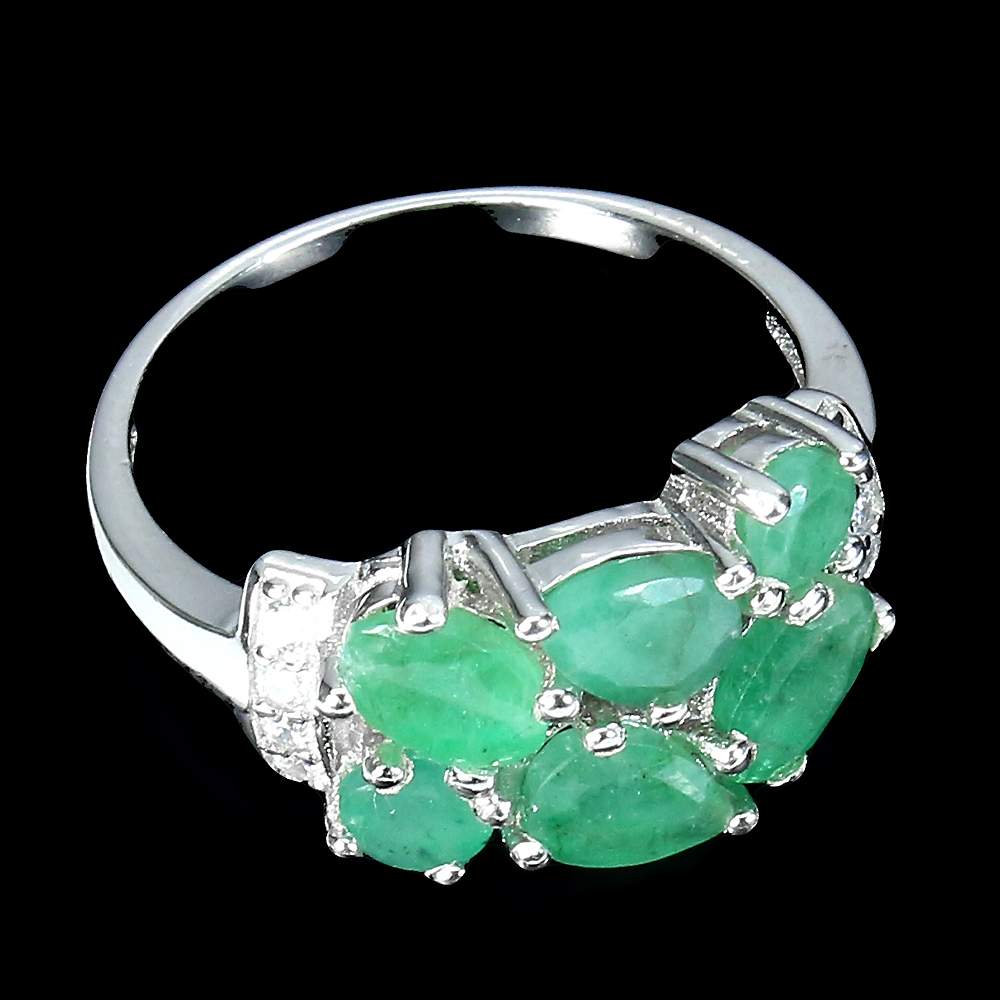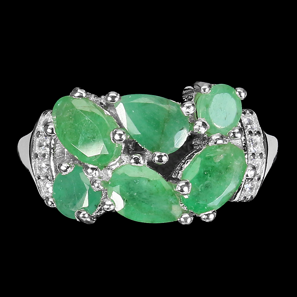 Unheated Oval Green Emerald 6x4mm Simulated Cz 925 Sterling Silver Ring Size 7.5