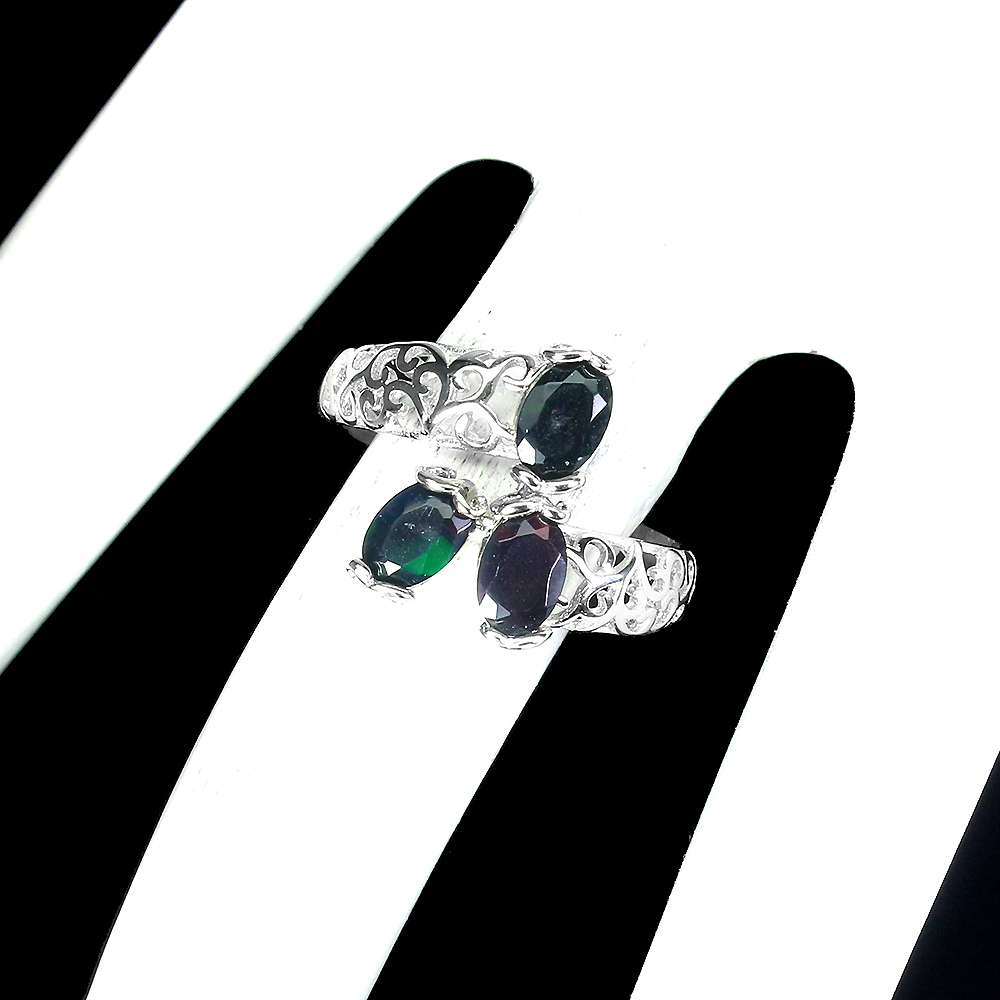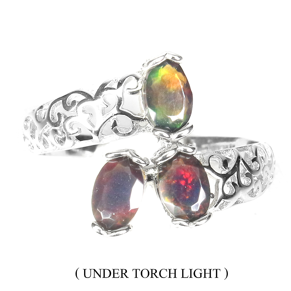 Clarity Enhanced Oval Black Opal Rainbow 6x4mm 925 Sterling Silver Ring Size 8.5