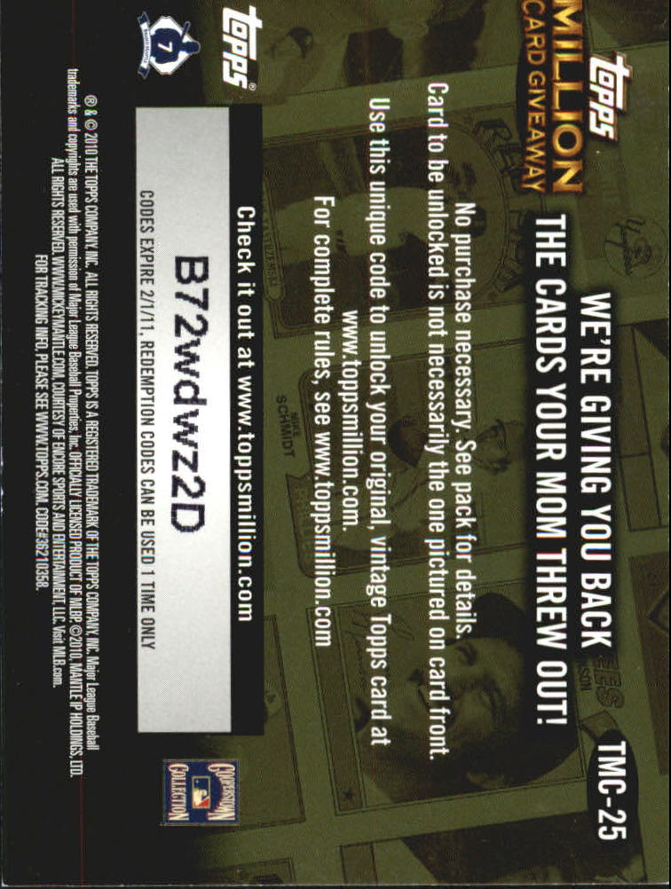2010 Topps Million Card Giveaway #TMC25 Mickey Mantle - BB