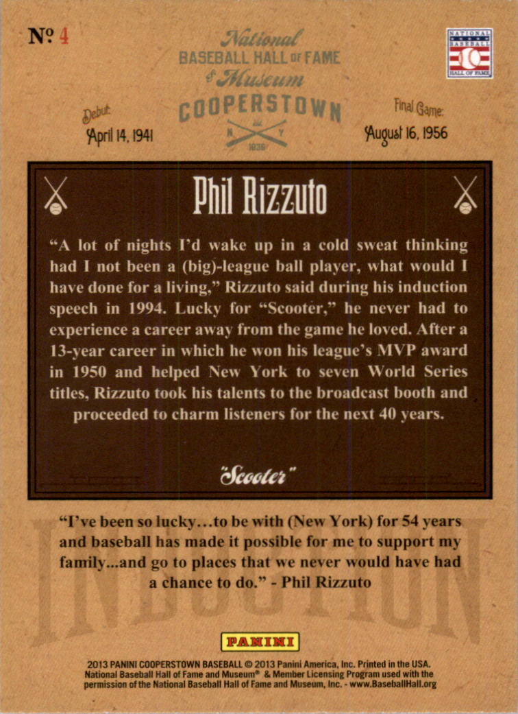2013 Panini Cooperstown Induction #4 Phil Rizzuto - BB
