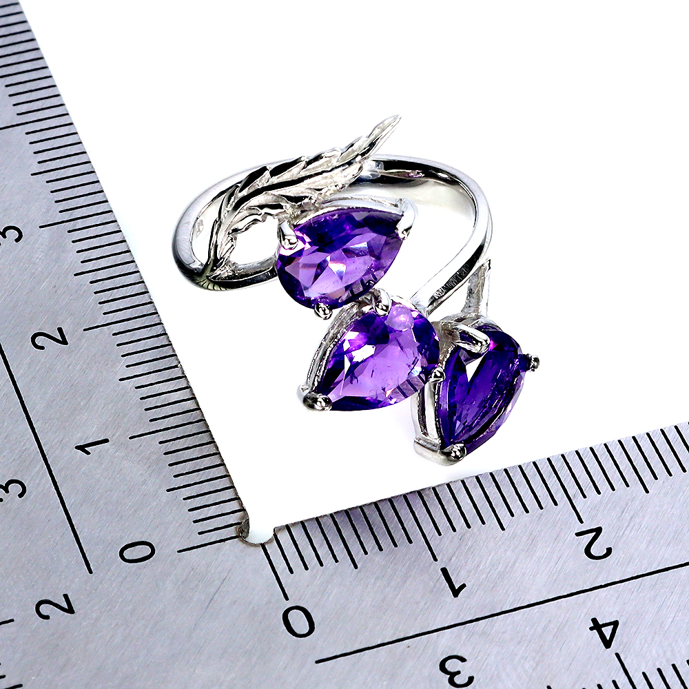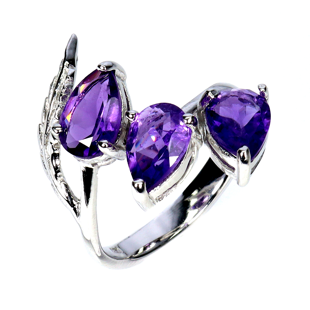 925 Sterling Silver Ring Pear Amethyst 9x6mm Natural Gemstone Jewelry Size 9