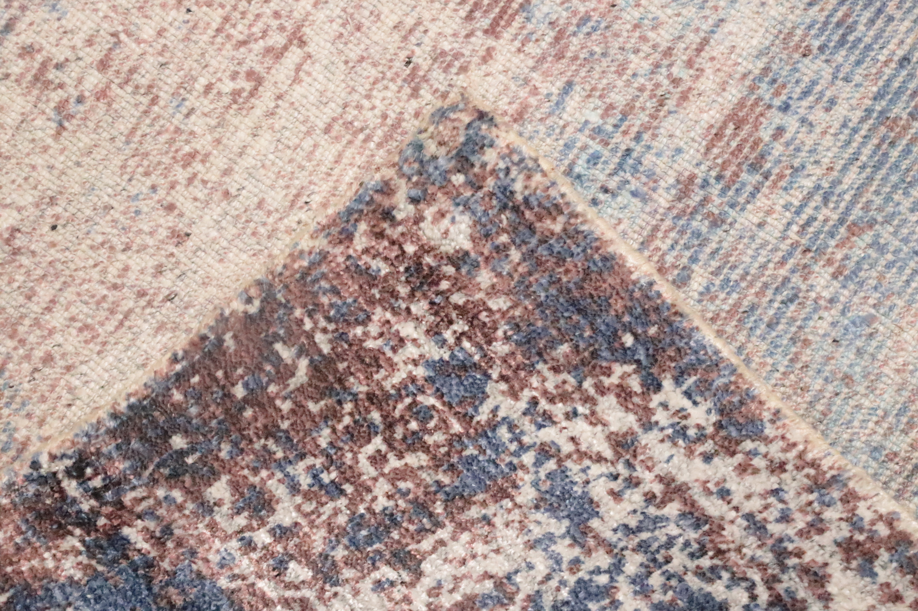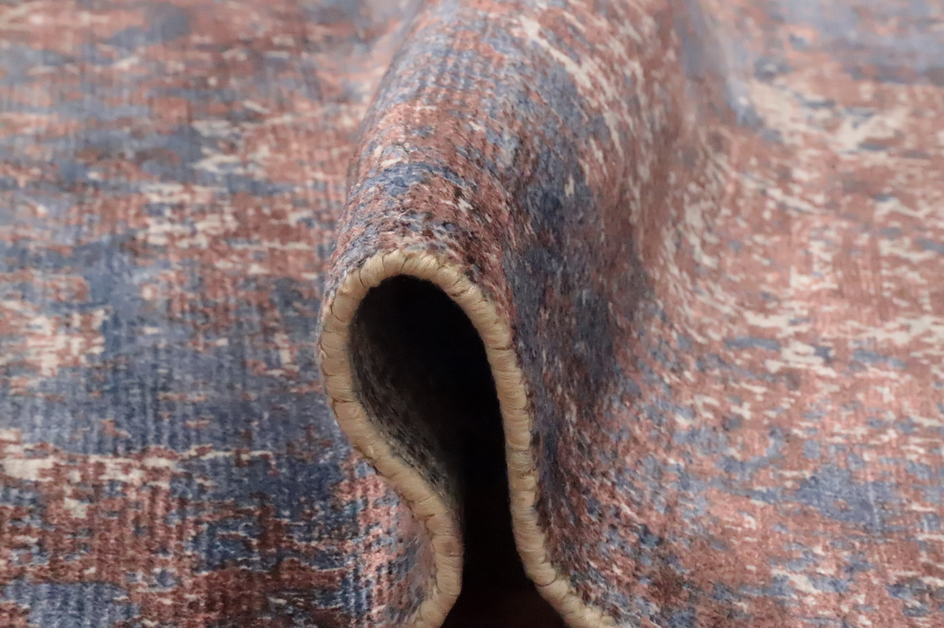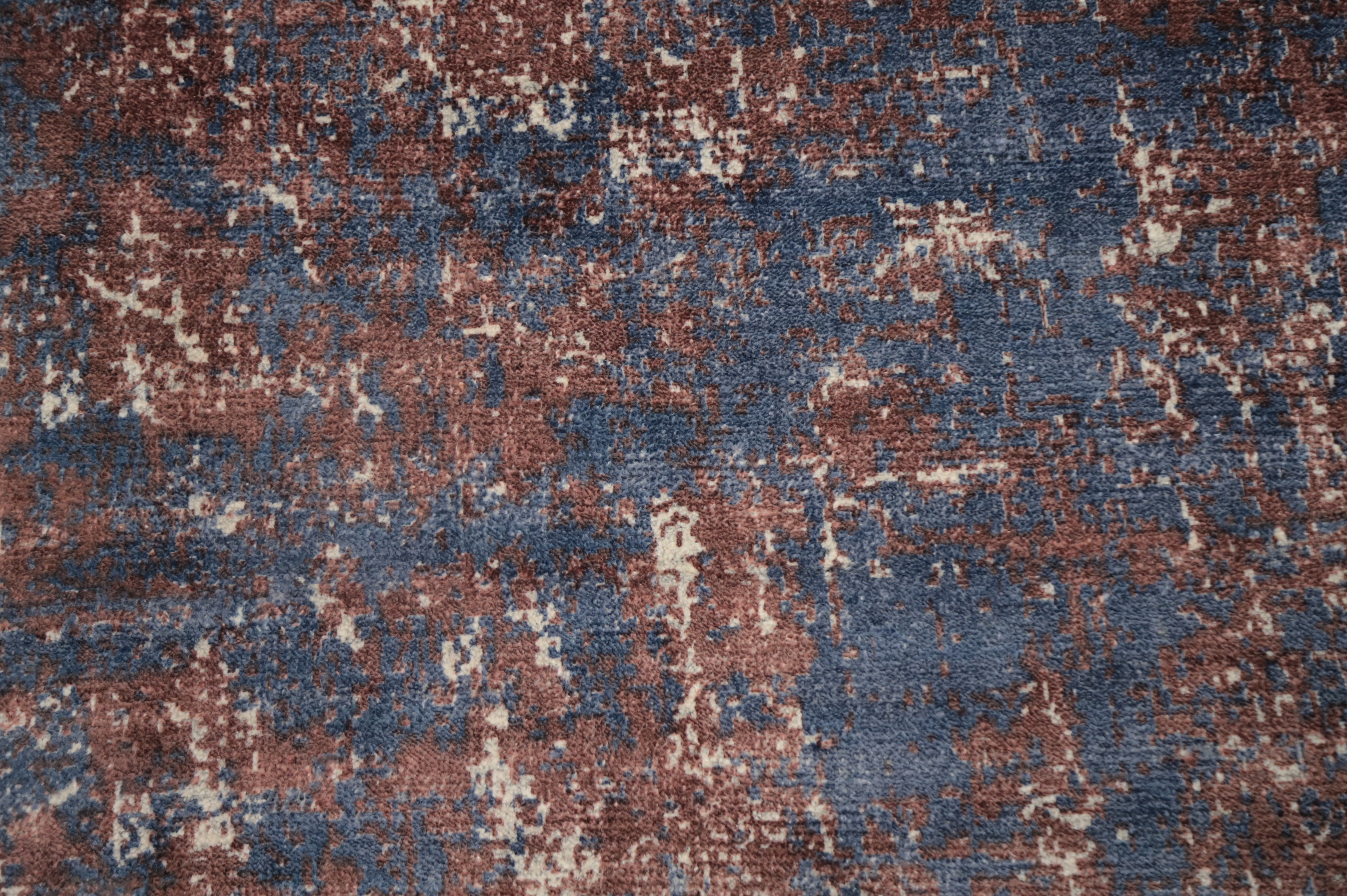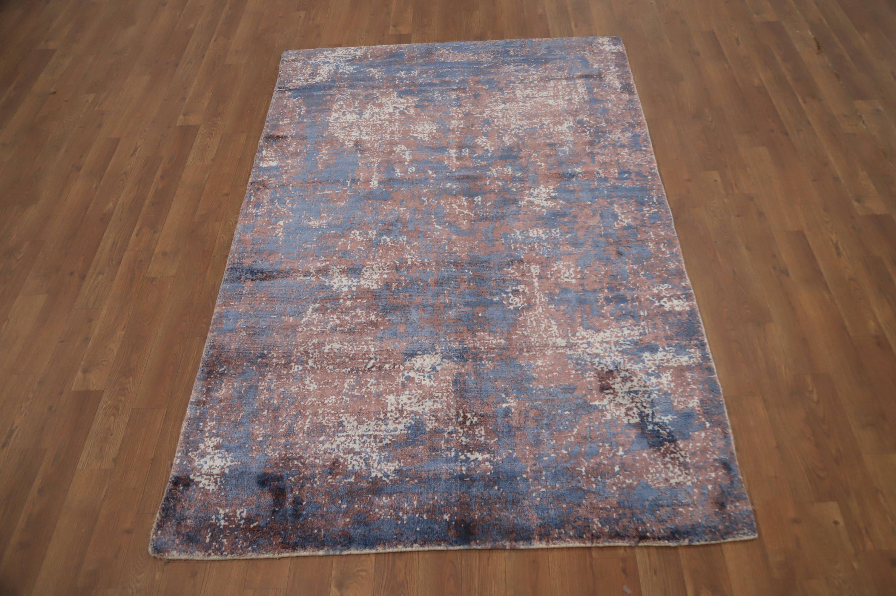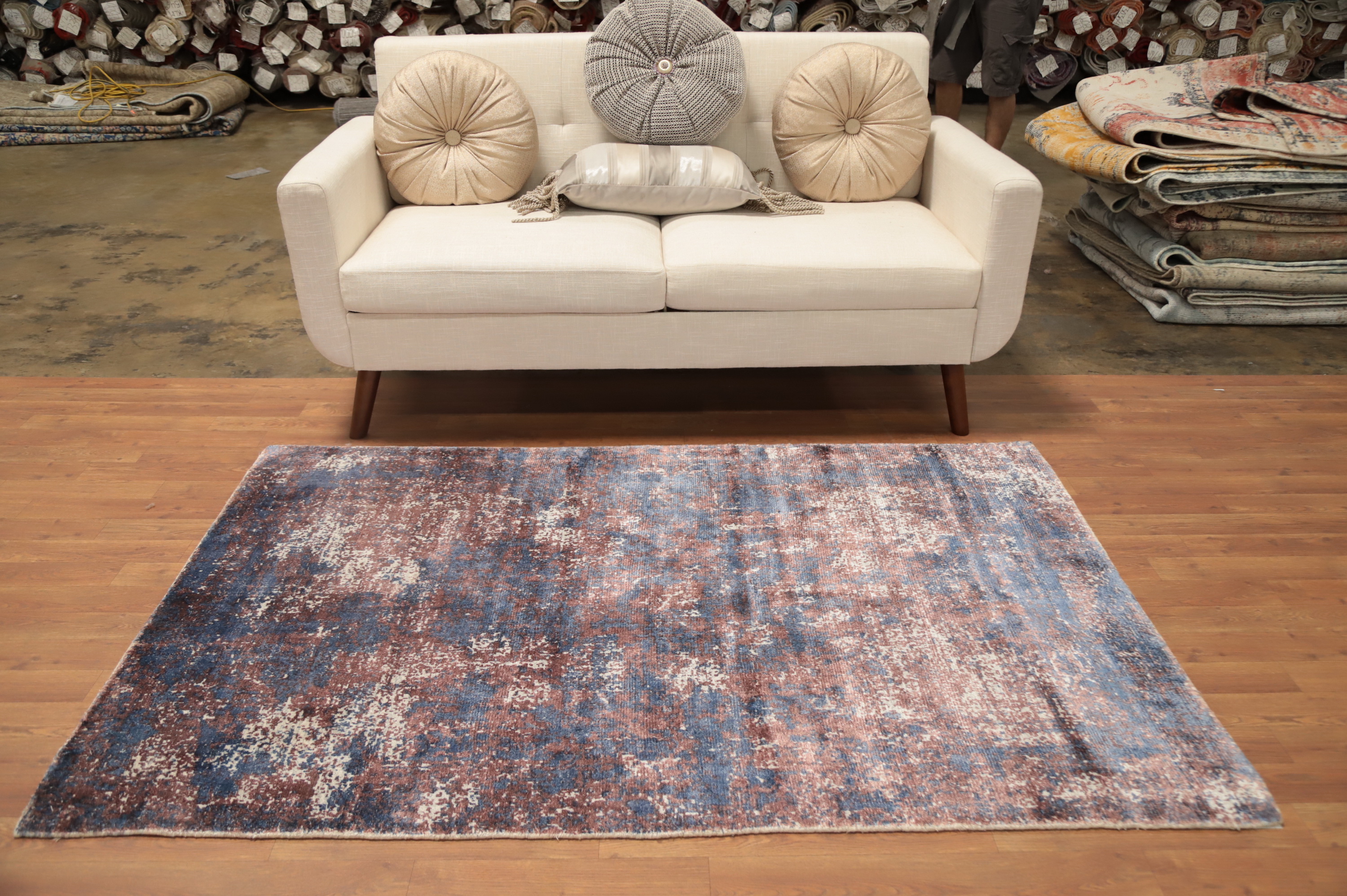 Handmade Abstract Area Rug 4x6 for Modern Living Blue and Rust Textured Carpet