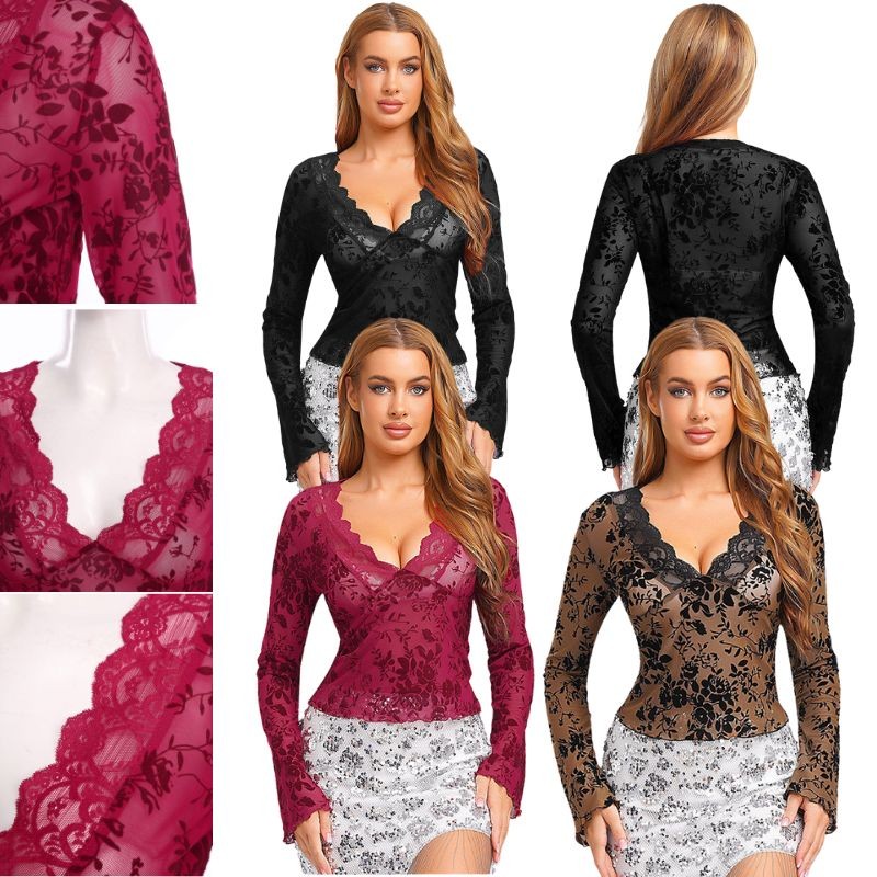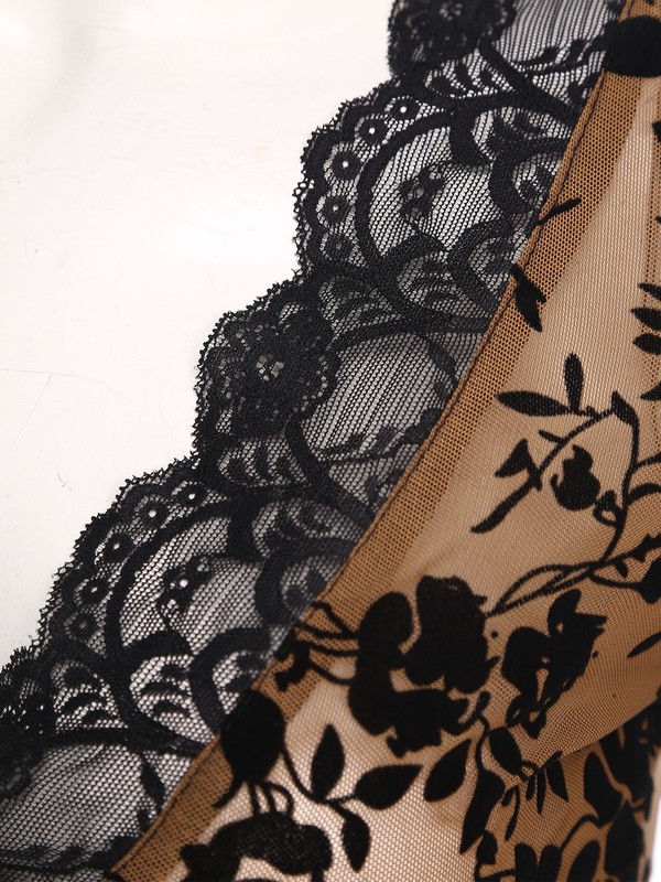 The sheer mesh and floral design bring a touch of femininity and a trendy, romantic look, making it a fashionable choice that stands out.