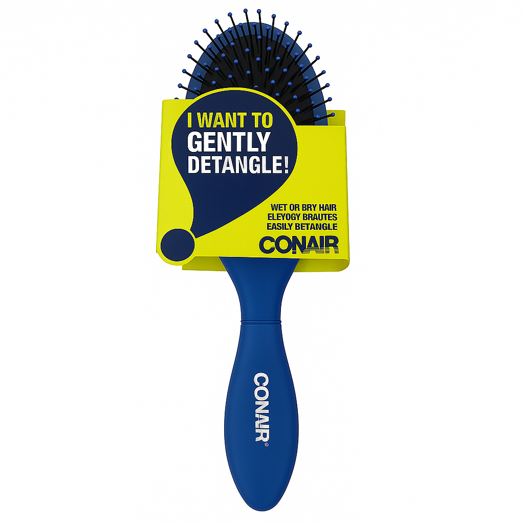 Effortlessly work through knots and tangles with the Conair Detangling Hair Brush, designed to provide a gentle and effective brushing experience for all hair types. Featuring soft, ball-tipped bristles on a flexible cushion base, this brush glides through wet or dry hair without pulling, snagging, or causing breakage. Its ergonomic handle ensures a comfortable grip during daily styling, while the durable design makes it ideal for at-home or on-the-go use. Whether you have fine, thick, curly, or straight hair, this brush is your go-to styling solution. Great for adults and gentle enough for kids.
