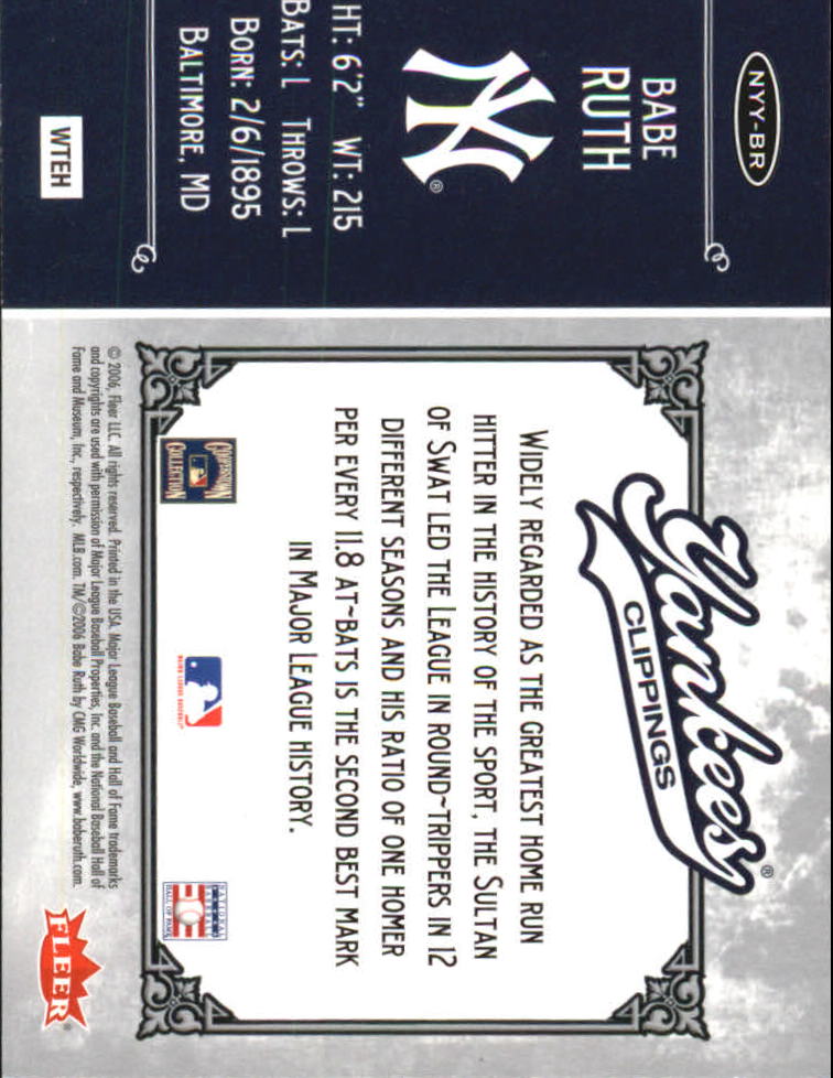 2006 Greats of the Game Yankee Clippings #BR Babe Ruth - BB