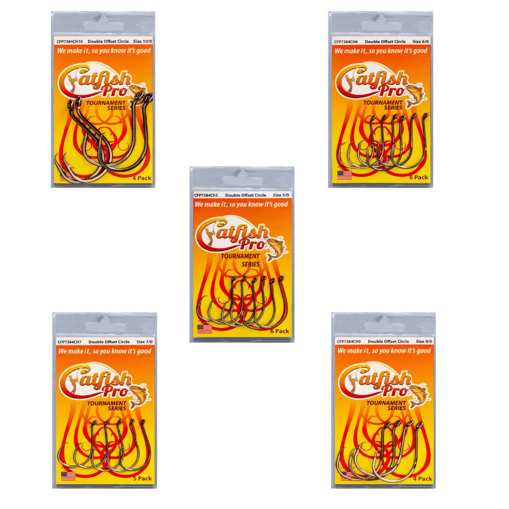 The Catfish Pro Tournament Series Double Offset Circle Fishing Hook is the ultimate tool for serious anglers seeking to elevate their catfishing game. Engineered with precision, this top-tier fishing hook boasts a double offset circle design that maximizes hook-ups while minimizing the chance of fish escaping. Crafted from premium-grade materials, these hooks are exceptionally durable and ensure long-lasting performance. Ideal for both avid anglers and professionals, this hook promises unparalleled results and sets the stage for tournament-worthy triumphs. Choose the Catfish Pro Tournament Series Double Offset Circle Hook to enhance your fishing skills, outsmart your prey, and dominate the waters like never before! Effective, Strong, and Razor-Sharp Double Offset Circle Fishing Hooks. Each hook is made from high-carbon steel. Double offset on the eye of the hook allows an angler to snell their hook fast and easy for added strength and durability. Designed to prevent a fish from swallowing the hook.