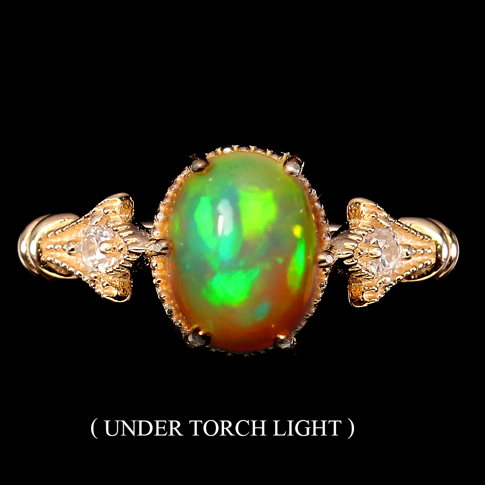 Unheated Oval Fire Opal Rainbow Full Flash 9x7mm Cz 925 Sterling Silver Ring