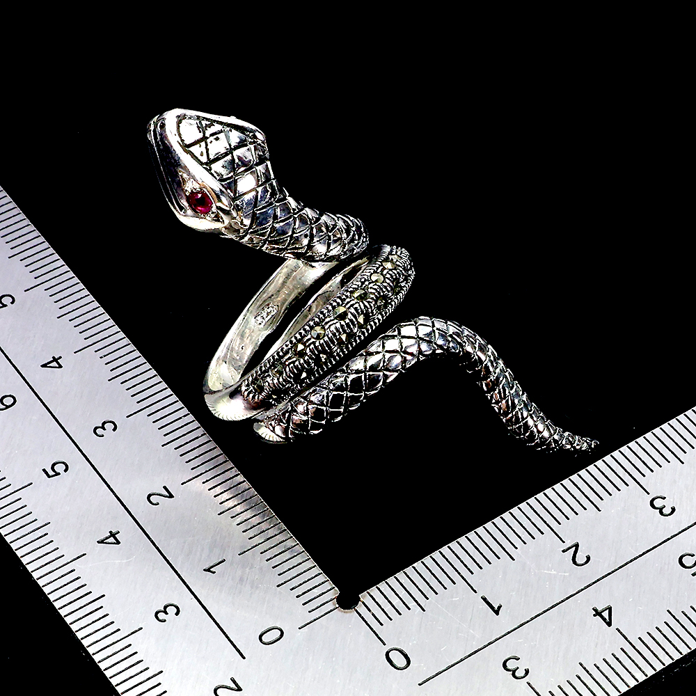 925 Sterling Silver Ring Round Simulated Cz Marcasite Gemstone Cobra Jewelry Sz 8