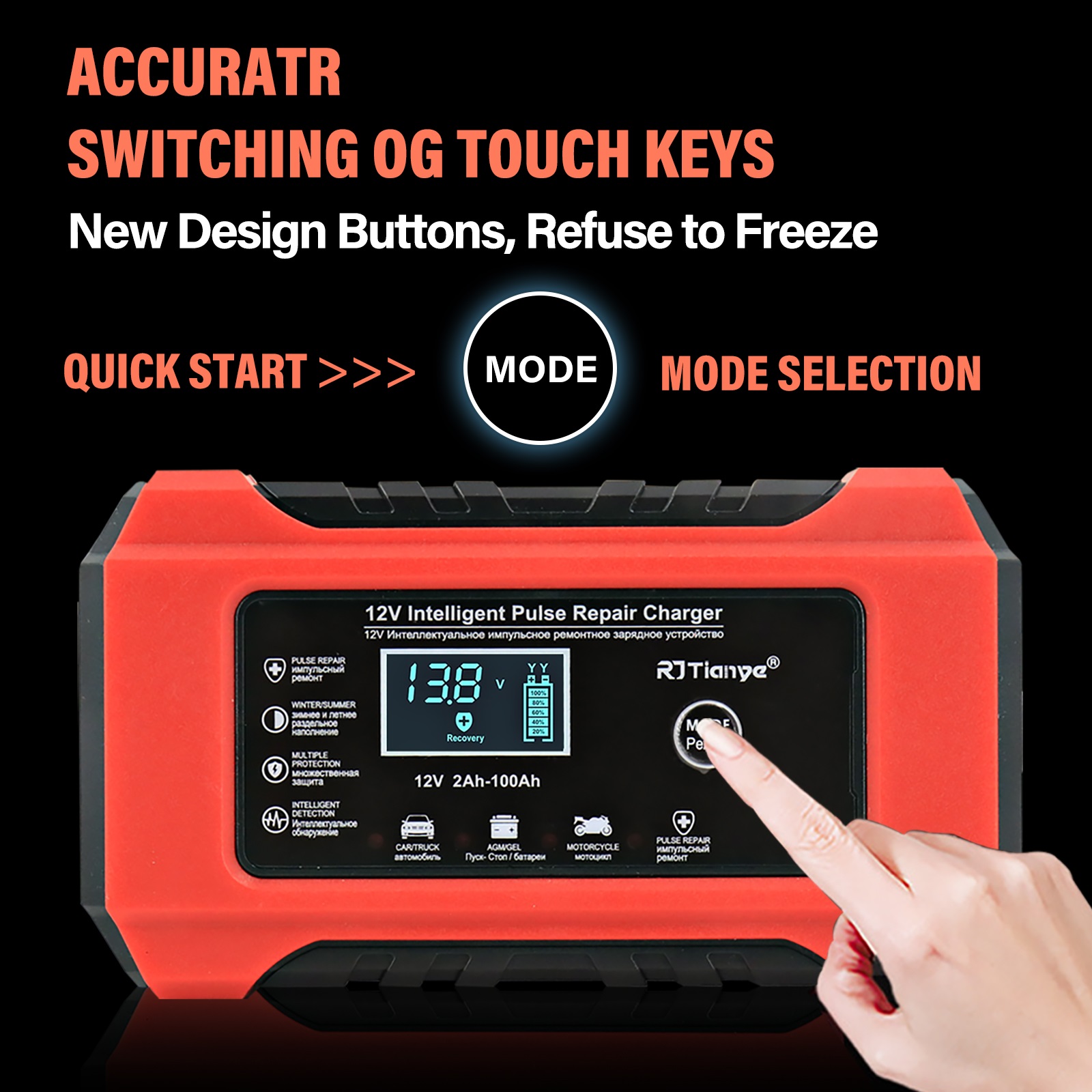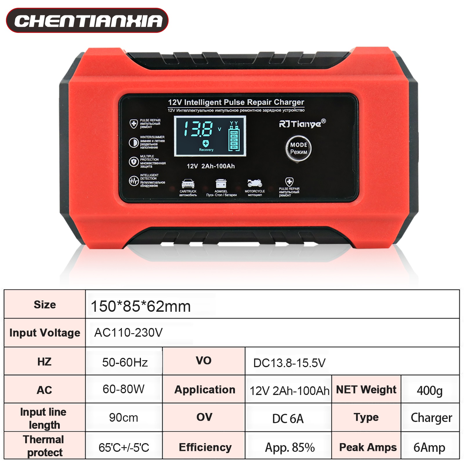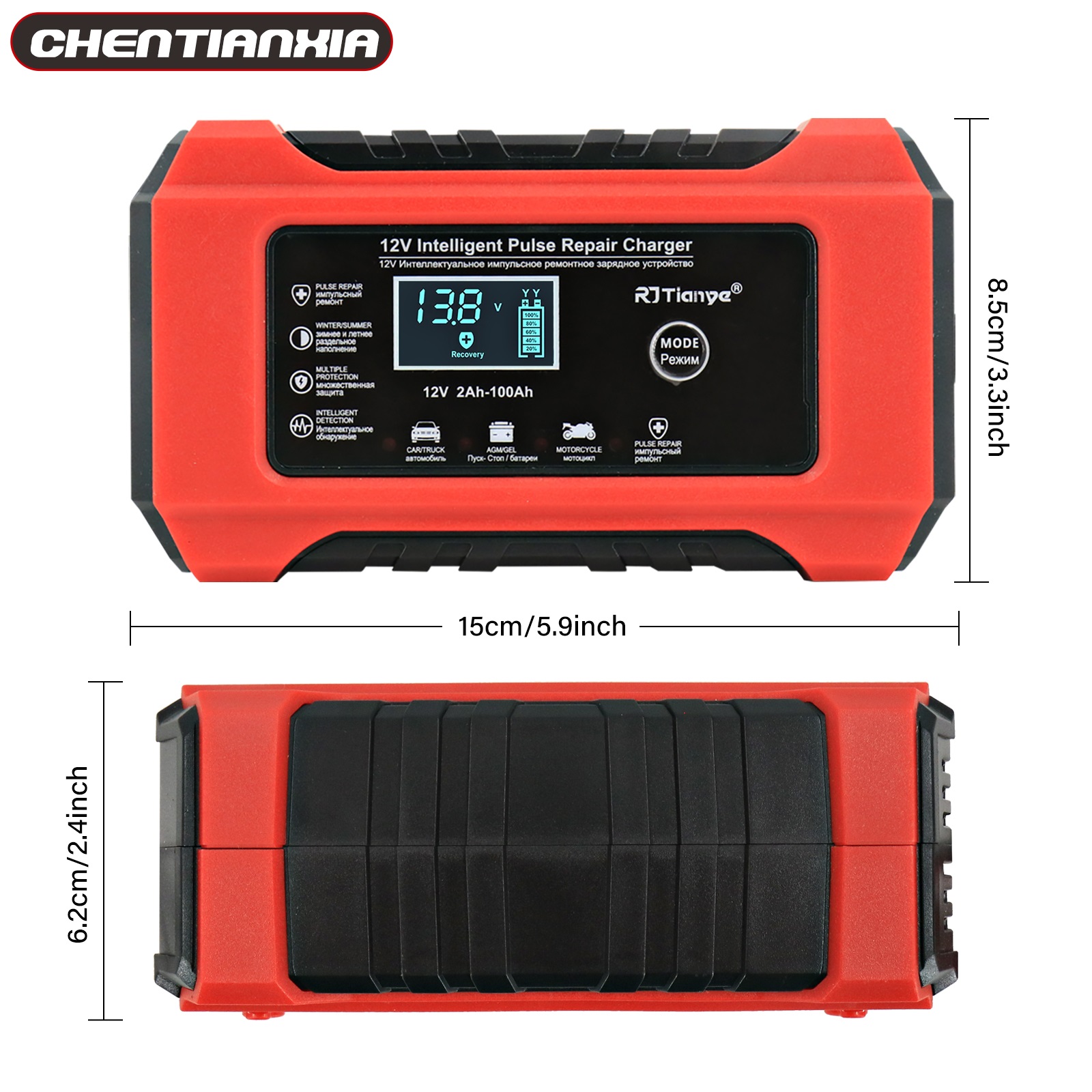 Specification: - 3 Stage Charging Car battery charger fully automatic high-frequency charging delivers 3 stage charging, automatically switching from fast charge, to top-off, then to trickle charge. - 4 working modes (Mode selection, can only be used when the battery and 230V are connected at the same time) 1. 'Car' mode.Suitable for ordinary cars, various agricultural vehicles, trucks and various 12V lead-acid batteries. 2. 'Start-Stop' mode.Suitable for batteries with start-stop function and GEL/AGM/Wet batteries... 3. 'Motorcycle' mode.Suitable for various motorcycles, and various 12V lead-acid batteries. It will enter trickle charge mode (floating charge) to maintain the voltage of the battery and keep the battery charged for a long time. Even if the screen shows OFF, it will monitor the voltage of the battery. Once the voltage drops below 12.5 volts, the charger will automatically turn on and charge it again to keep the voltage normal. 4. 'Repair' mode.If it has been idle for a long time, is old, and cannot be charged, you can choose the "Repair" mode to try to activate the battery.