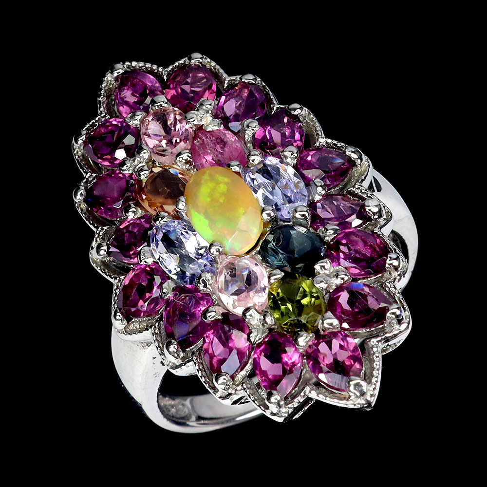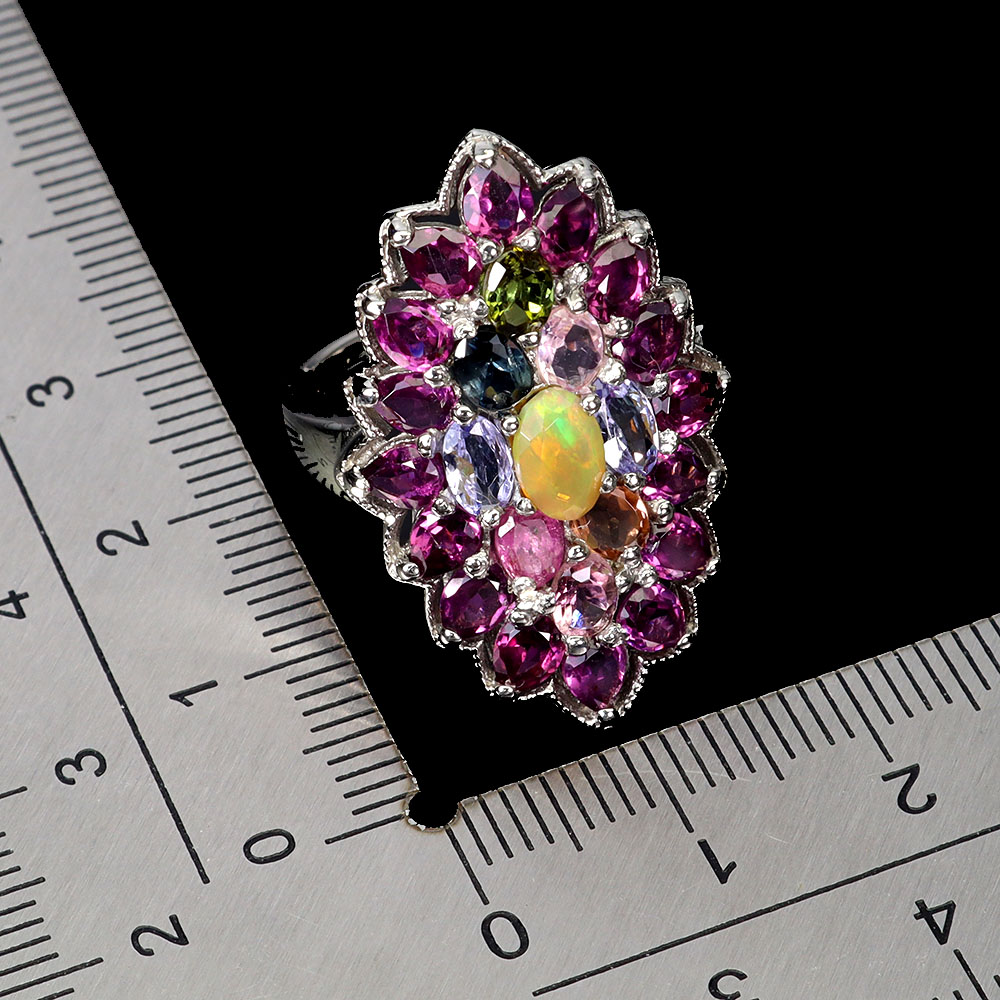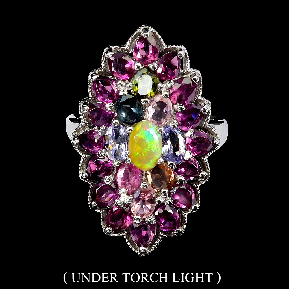 925 Sterling Silver Ring Oval Fire Opal 6x4mm Tourmaline Gemstone Jewelry Size 8
