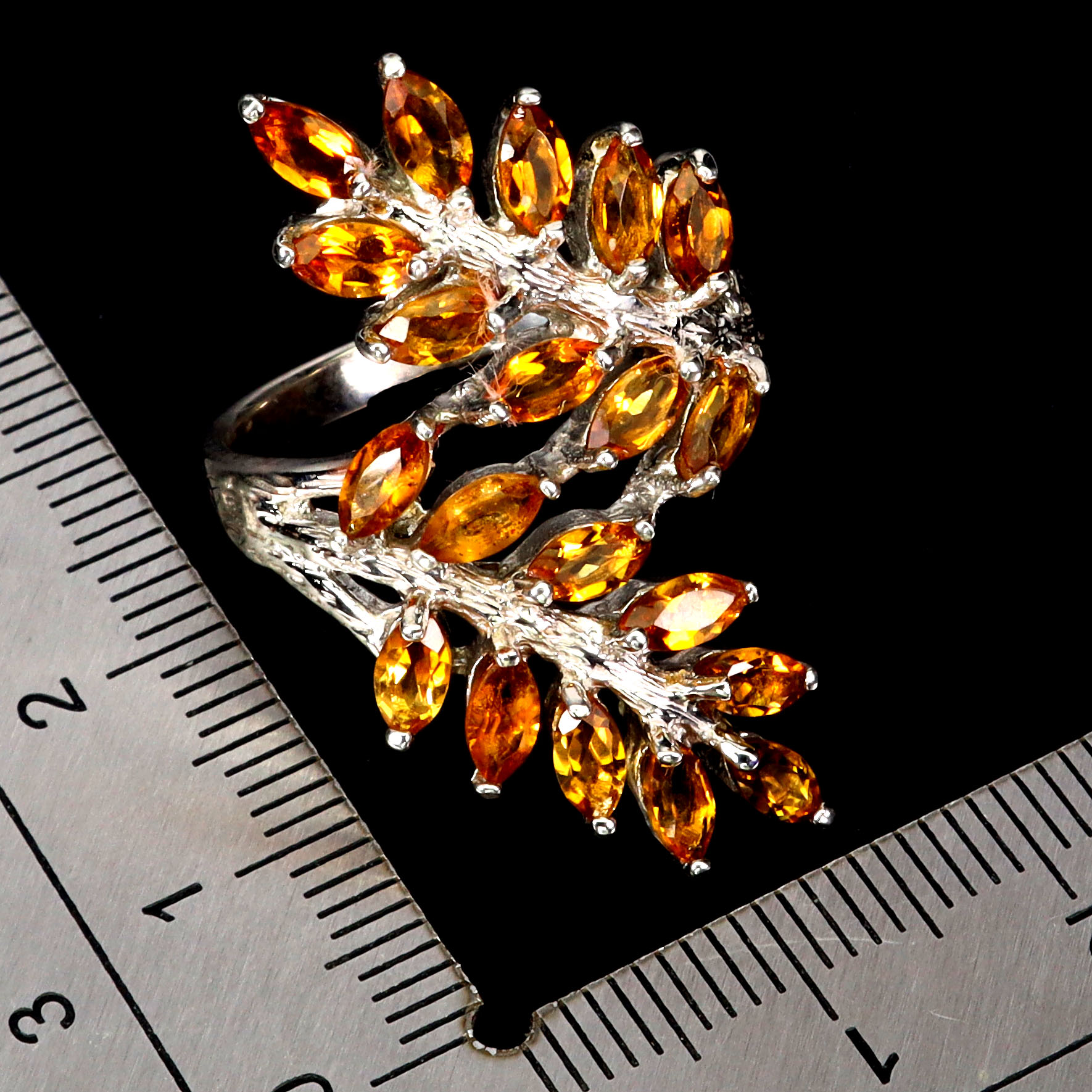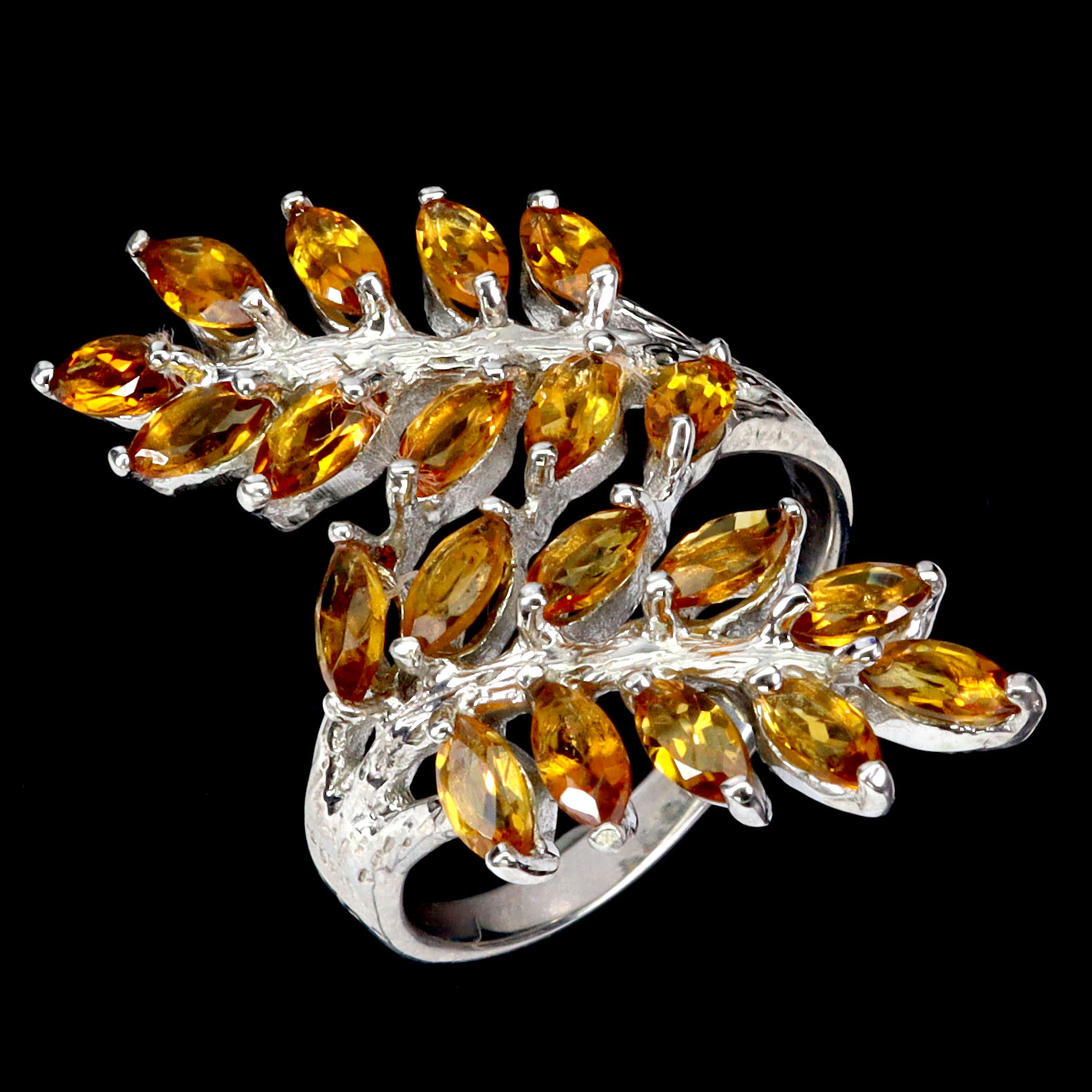 925 Sterling Silver Ring Marquise Citrine Natural Gemstone Jewelry Size 8.5