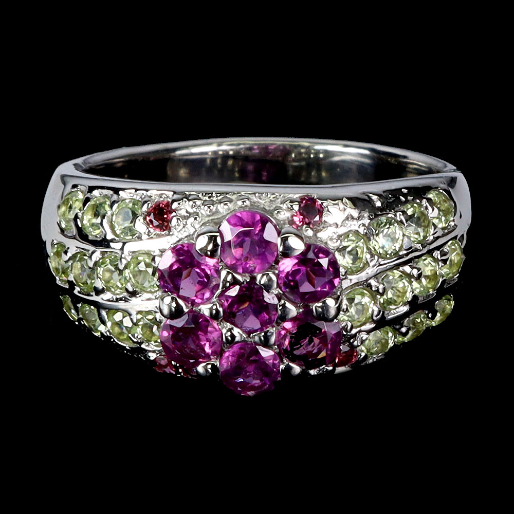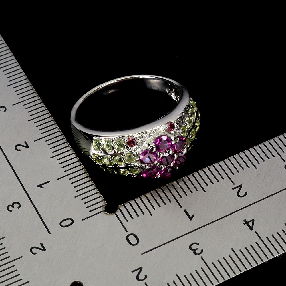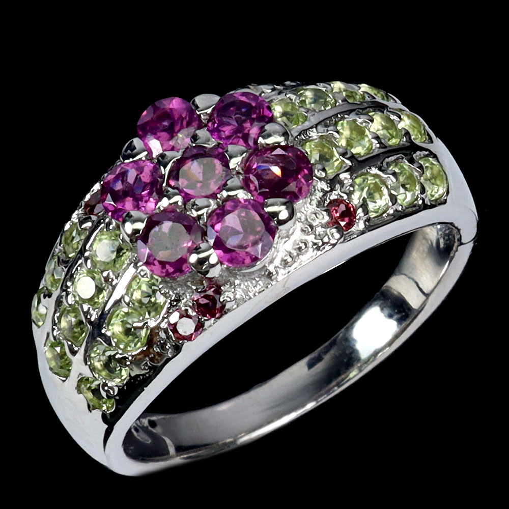 925 Sterling Silver Ring Round Rhodolite Peridot Natural Gemstone Jewelry Size 8.5