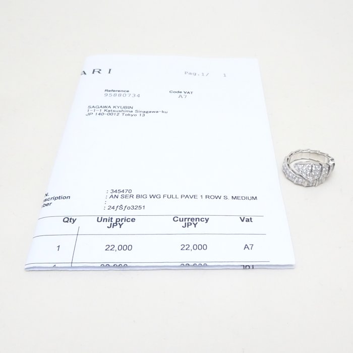 BVLGARI 347721 Serpenti viper M 18K White Gold ring Diamond Size 5.25 /292887