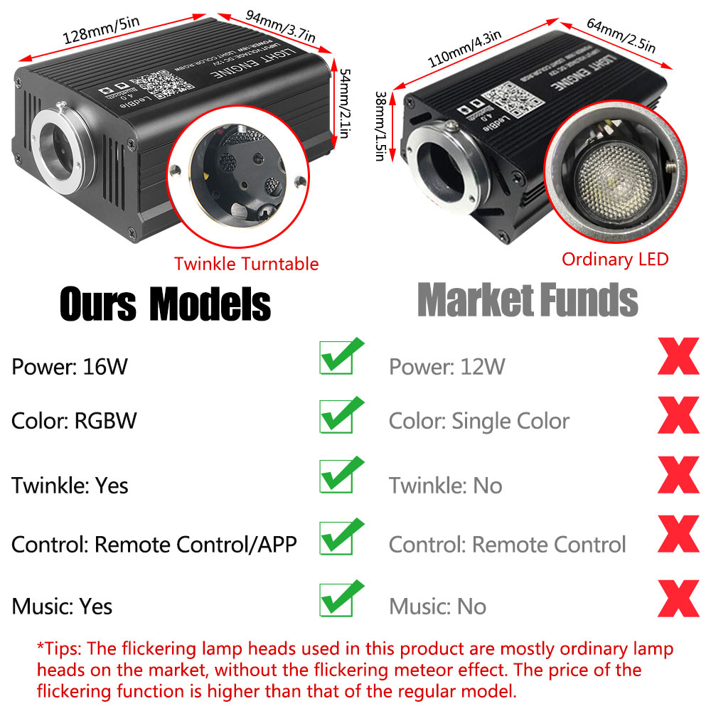 12V 16W RGBW Fiber Optic Lights Star Ceiling Light Twinkle Bluetooth APP & 28-button remote control.