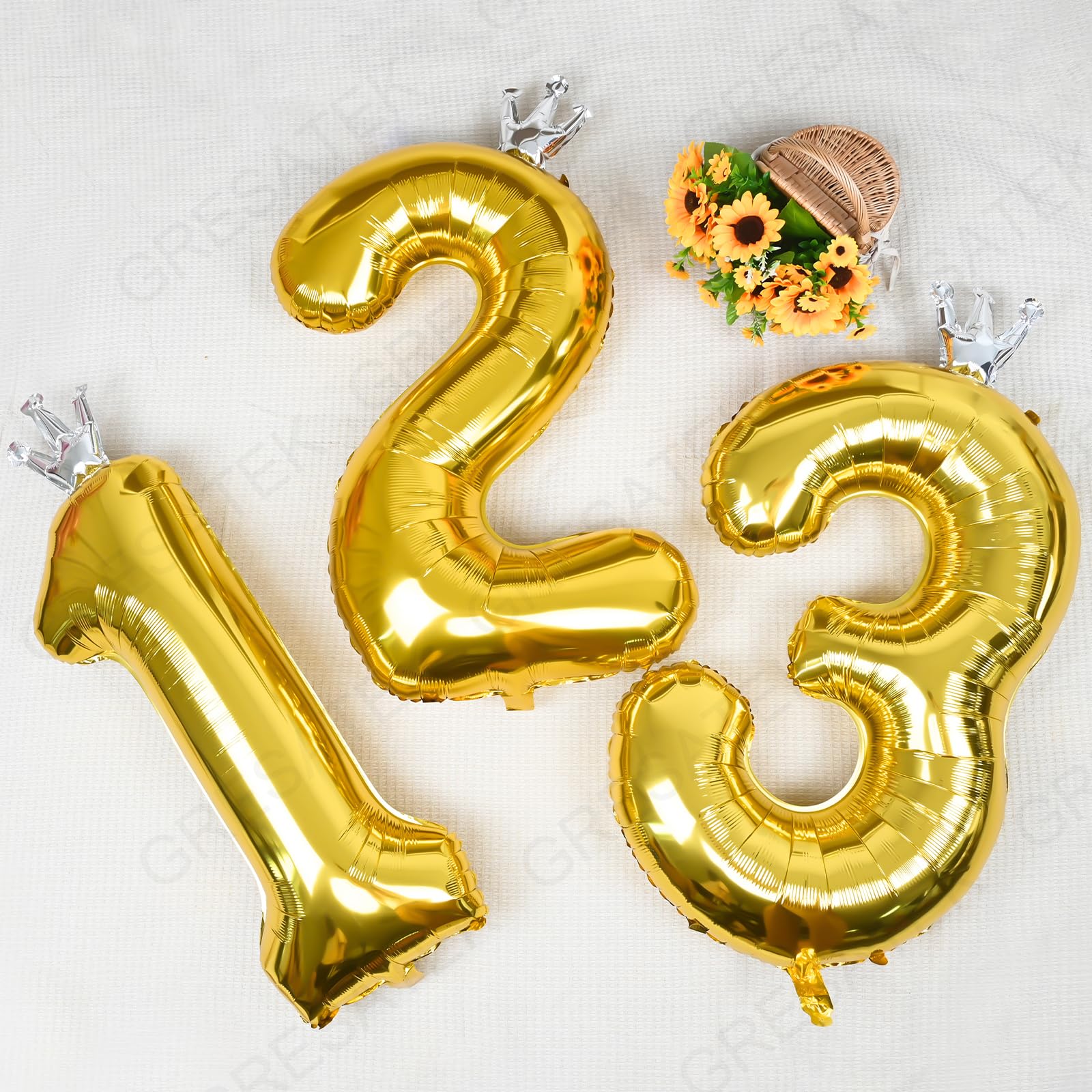 [Cute “crown” becomes number balloon! ]A new specification with a gold crown attached to the gold number balloon! The gold and silver colors give a chic yet gorgeous impression! How about decorating a birthday party, anniversary, or other celebration with these number balloons that add a little bit of glamor?