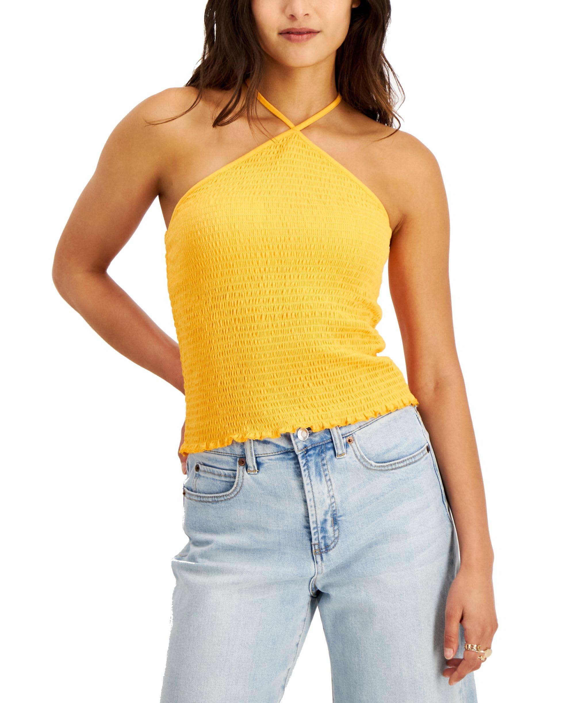 Crave Fame Juniors' Smocked Halter Top Tangerine XS