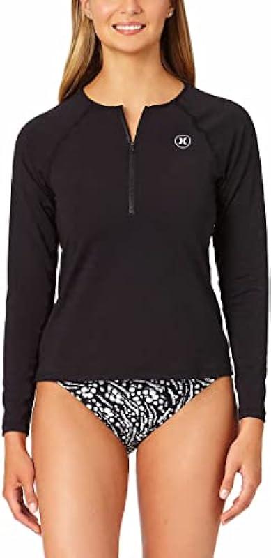 Hurley Womens UPF 50+ Long Sleeve Rashguard (Regular, Black Zip, X-Large)