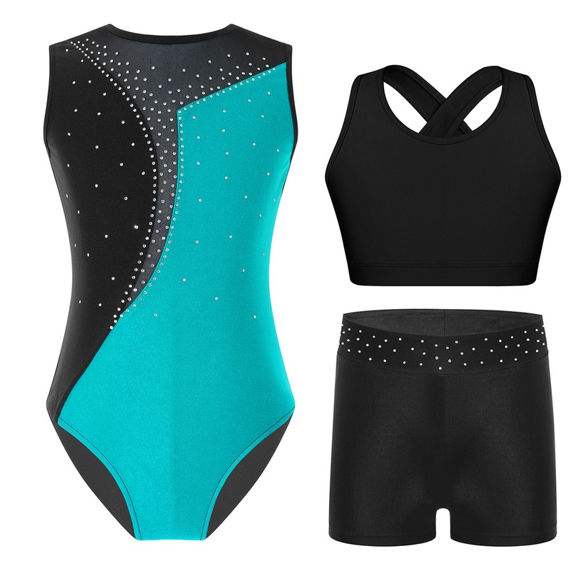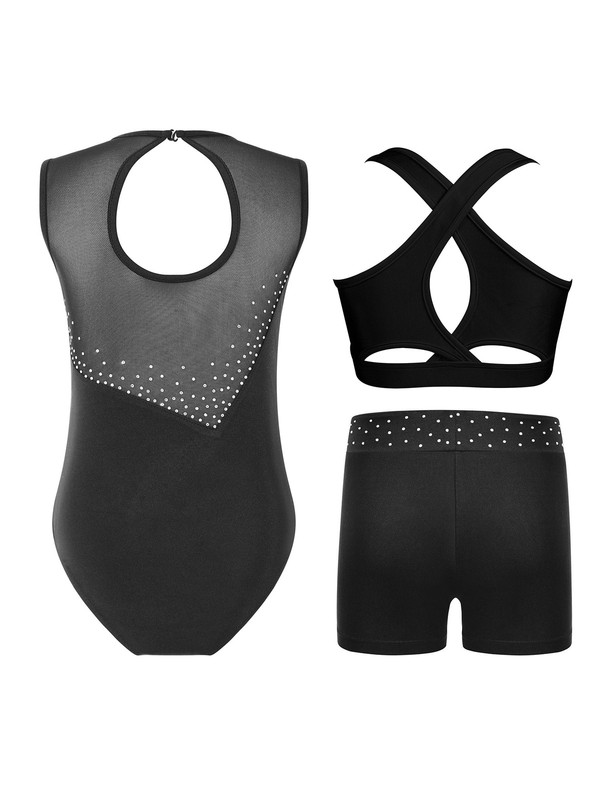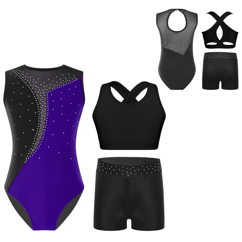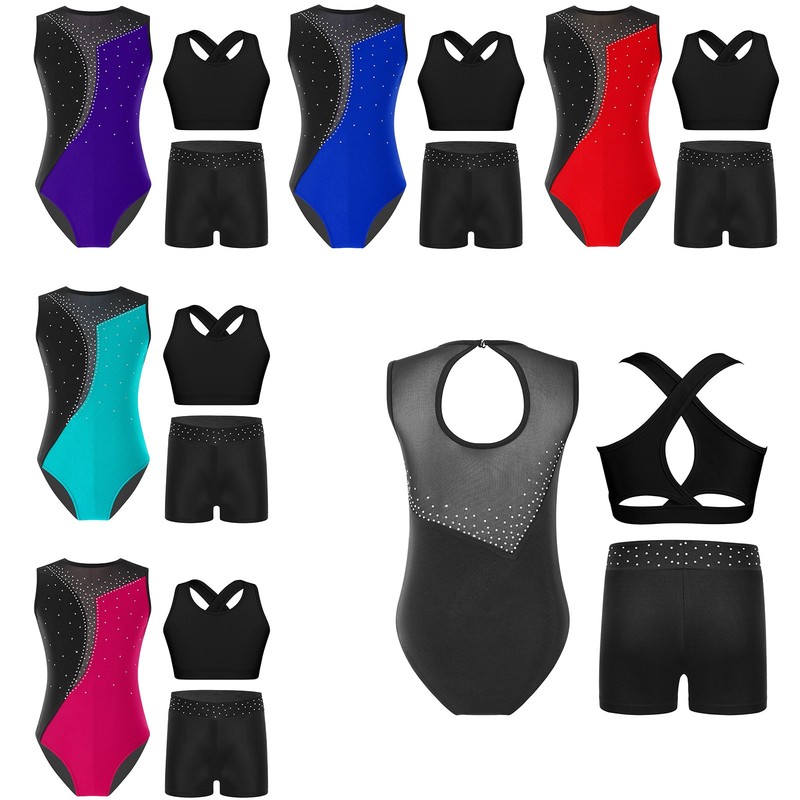 Set Include: 1Pc Dance Leotard, 1Pc Bra Top, 1Pc Shorts