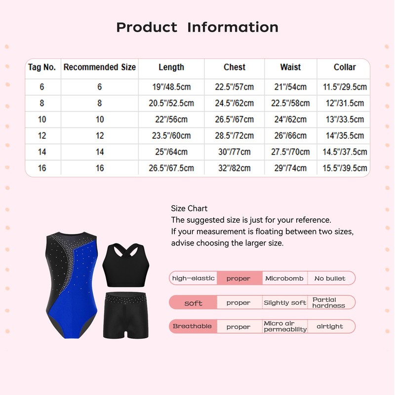 Made from a blend of polyester and spandex, the outfit is stretchy and flexible, allowing girls to move freely during dance practice or daily activities.