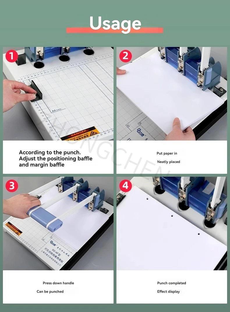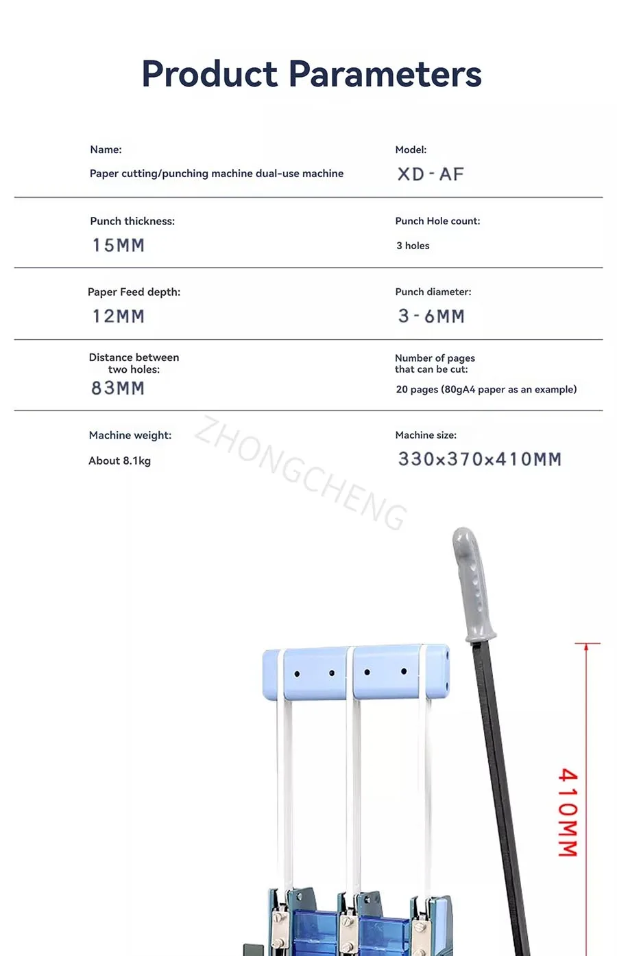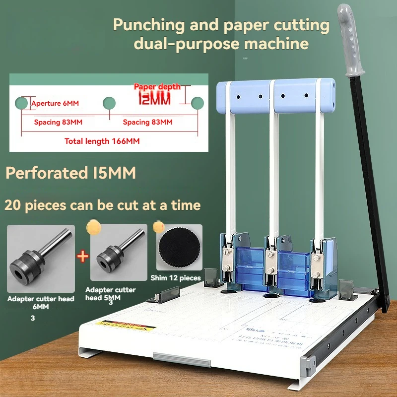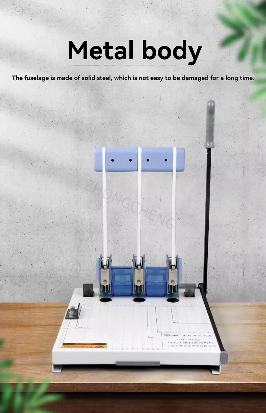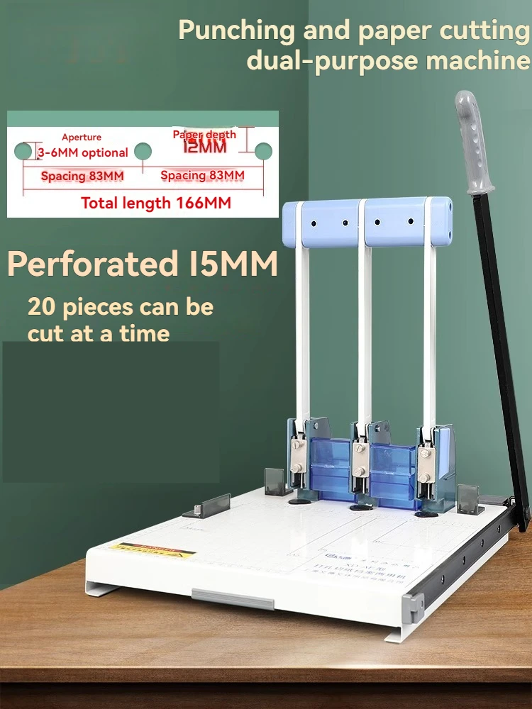 Three-hole powerful punching machine, paper cutter, archive binding machine, thick-layer voucher punching machine, bill punching machine