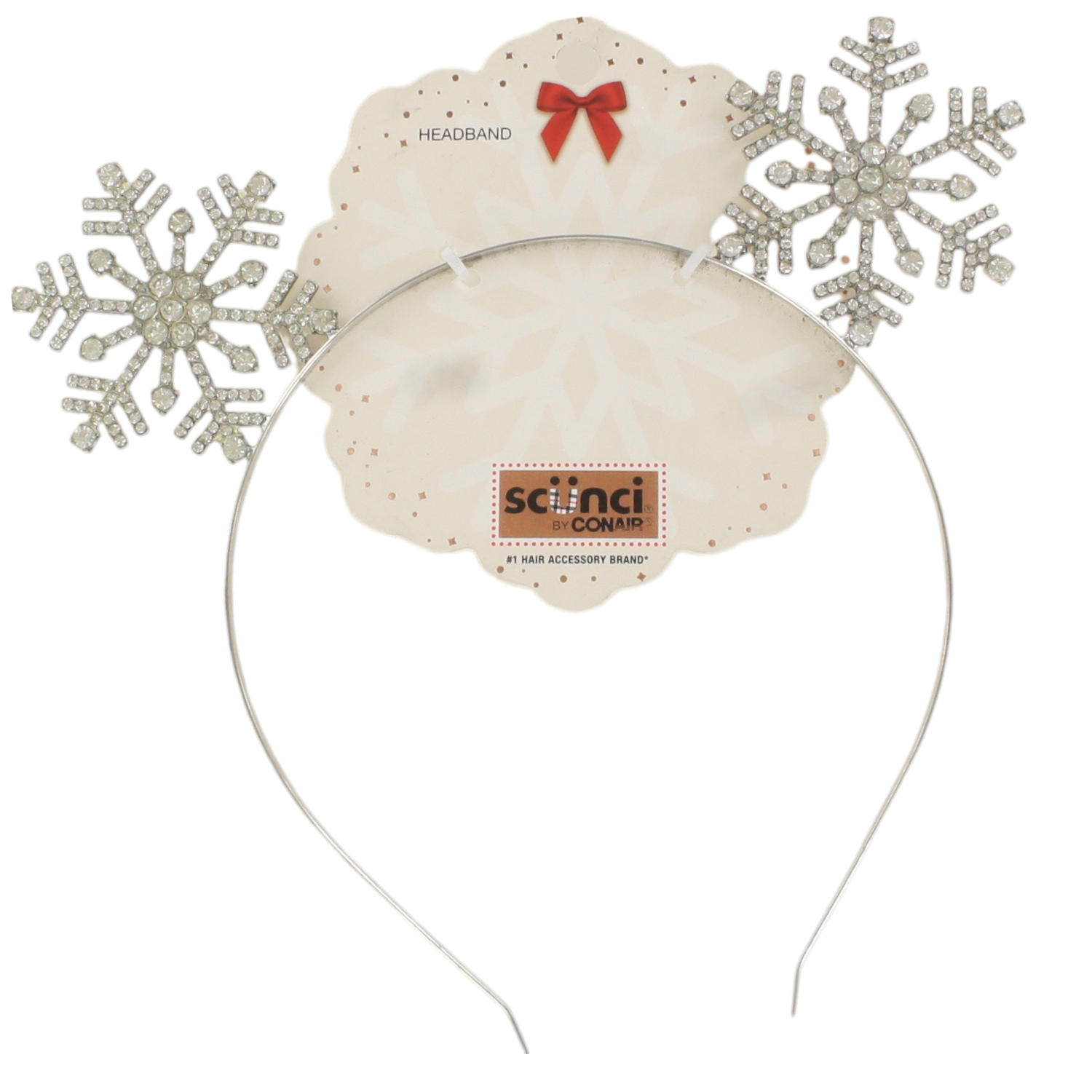 Make a sparkling statement this holiday season with the Scunci Holiday Snowflake Headband, the perfect accessory to add festive charm to your winter wardrobe. This beautifully designed headband features two dazzling rhinestone snowflakes, giving you an eye-catching winter wonderland look. Whether you're celebrating Christmas, attending a holiday party, or just embracing the winter spirit, this lightweight metal headband provides a comfortable and secure fit for all hair types. Designed for effortless elegance, this headpiece is ideal for festive outfits, holiday gatherings, or even a fun seasonal touch to everyday wear. Crafted with high-quality materials, this one-size-fits-all headband is perfect for kids, teens, and adults who love to accessorize with a little sparkle. Elevate your holiday style with Scunci, the #1 hair accessory brand, and make every moment shine brighter!