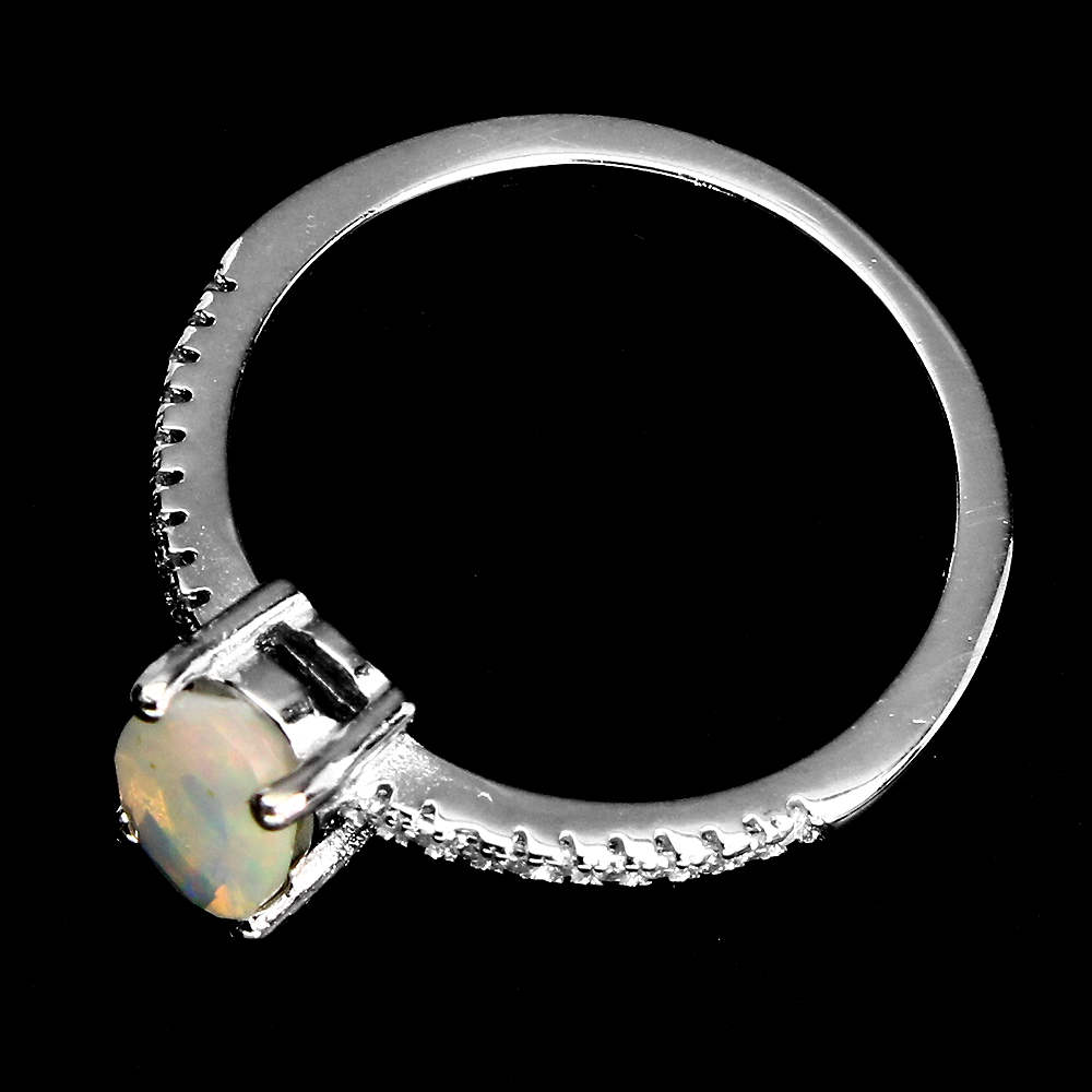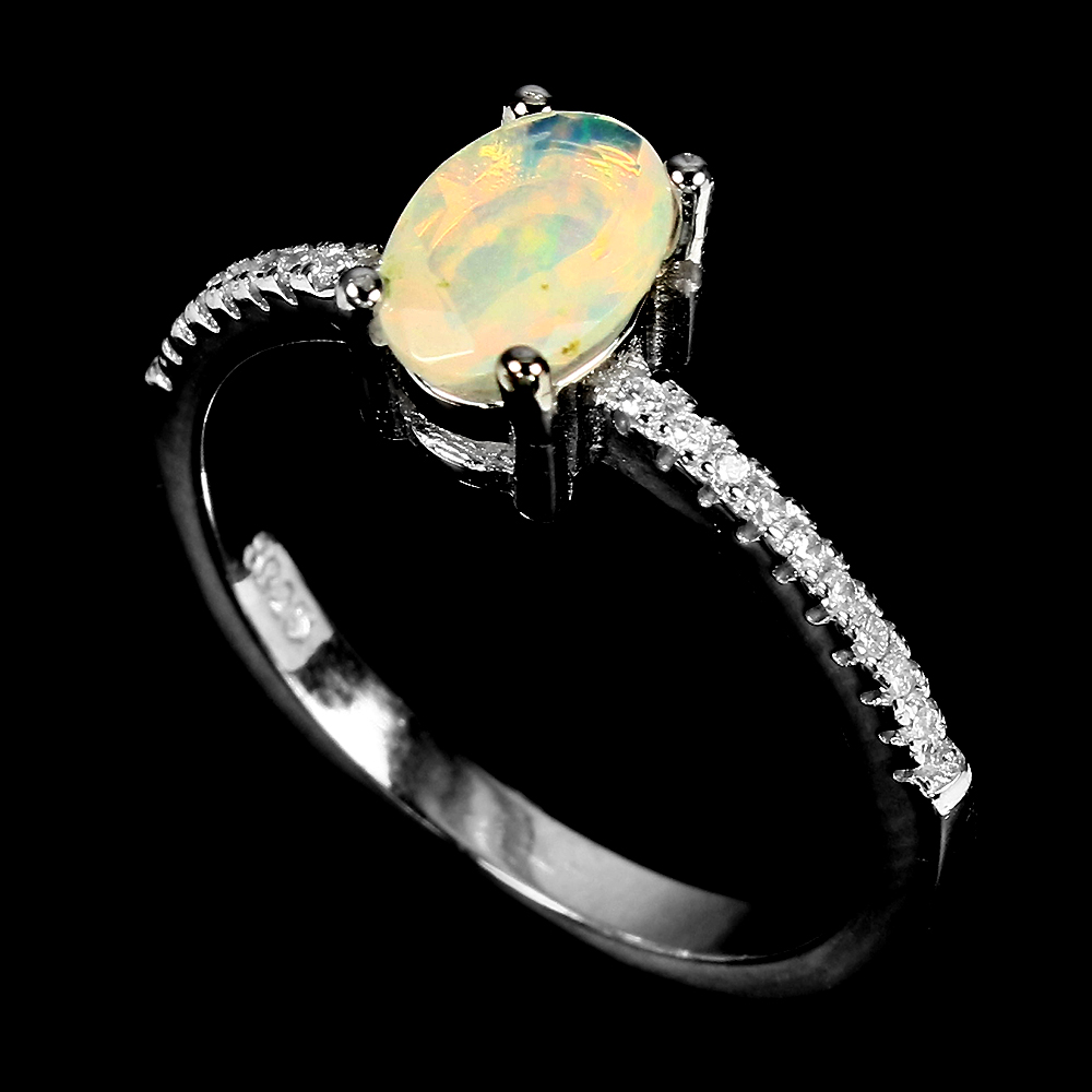 Unheated Oval Fire Opal Rainbow 7x5mm Simulated Cz 925 Sterling Silver Ring 7