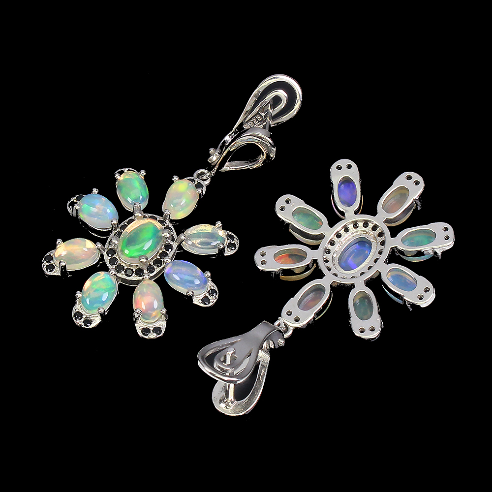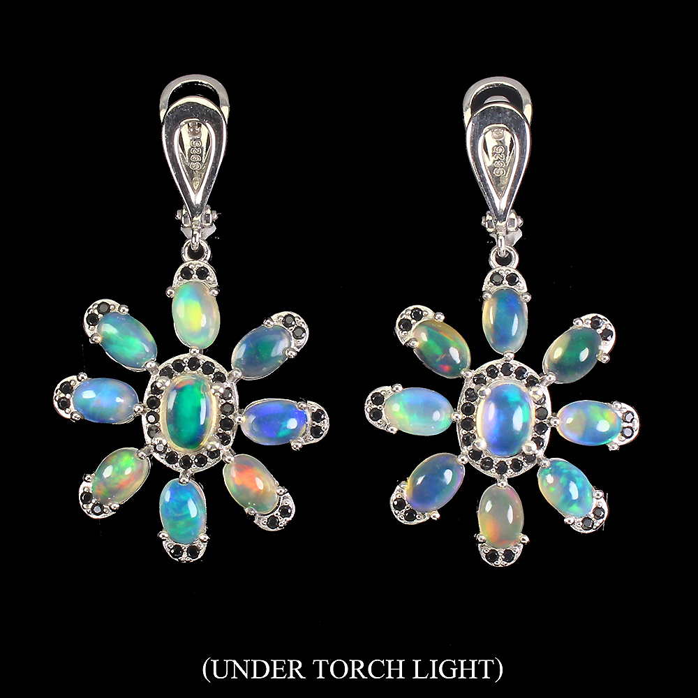 Unheated Oval Fire Opal Hot Rainbow 7x5mm Gems 925 Sterling Silver Earrings