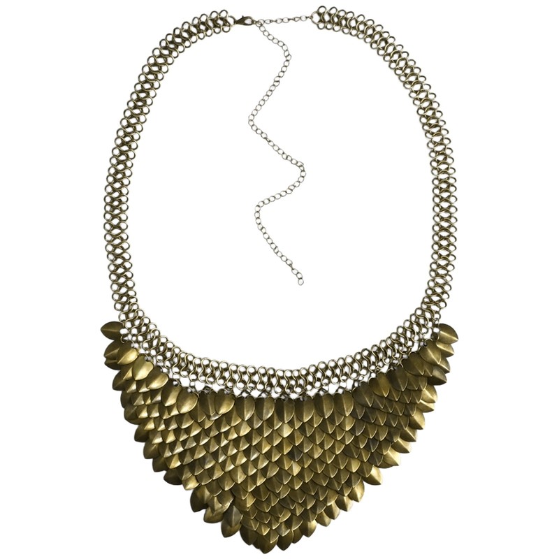 The layered scale structure adds a sense of volume and texture, making it a standout piece in any outfit.