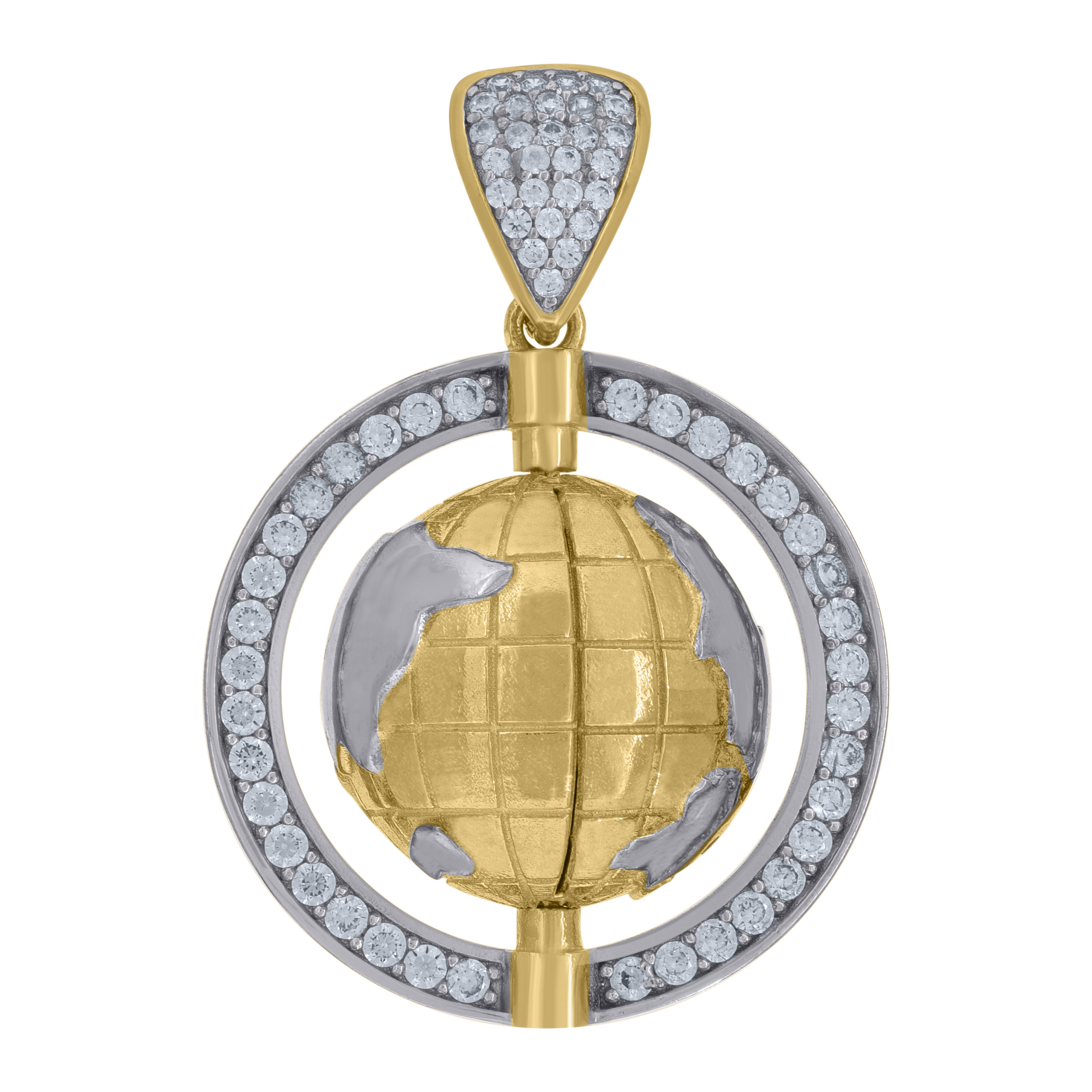 (10.2 gr. 10k Multi-Tone Gold | Length: 1.45" (including the bail) | Width: 1" | 10k Multi-Tone Gold World Map | 3D Globe | Circle Frame Pendant Statement Charm)