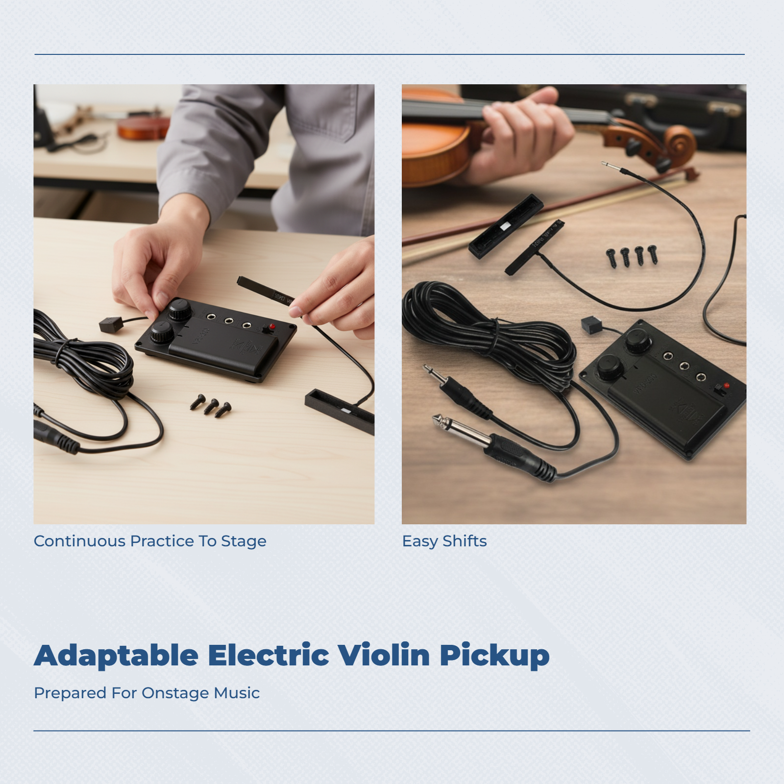 A key feature is the onboard silent EQ preamp, which provides controls for both volume and tone, giving you the power to shape your sound. This also enables silent practice when used with headphones, making it a versatile tool for any violinist. This kit is ideal for DIY projects and includes all the essential components for installation. Transform your violin and explore new sonic possibilities, whether you're performing on stage, recording in the studio, or practicing quietly at home.