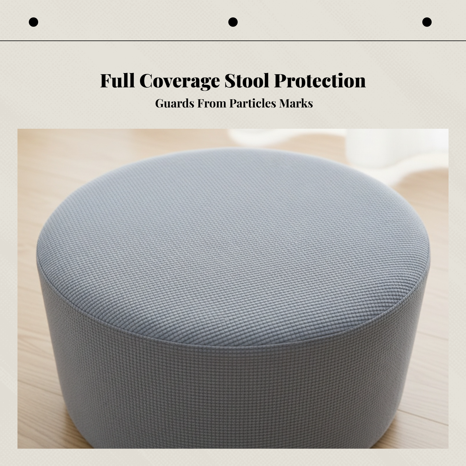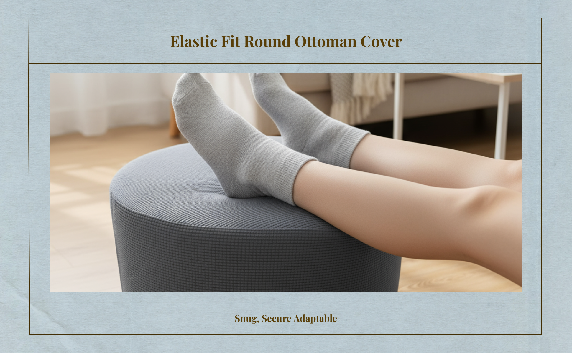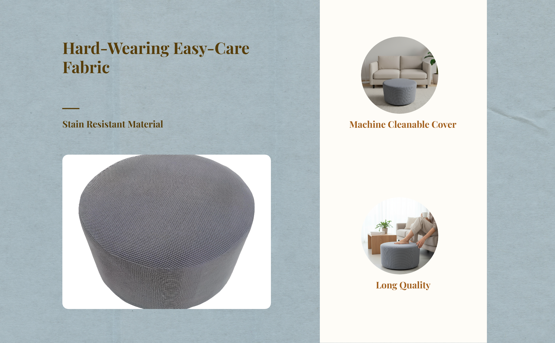 This is a stretchable round ottoman slipcover in a versatile gray color. It is designed to give your footrest a fresh new look while protecting it from daily wear, spills, and stains. The solid gray design easily complements various interior decor styles, making it a practical addition to your bedroom or living room.
