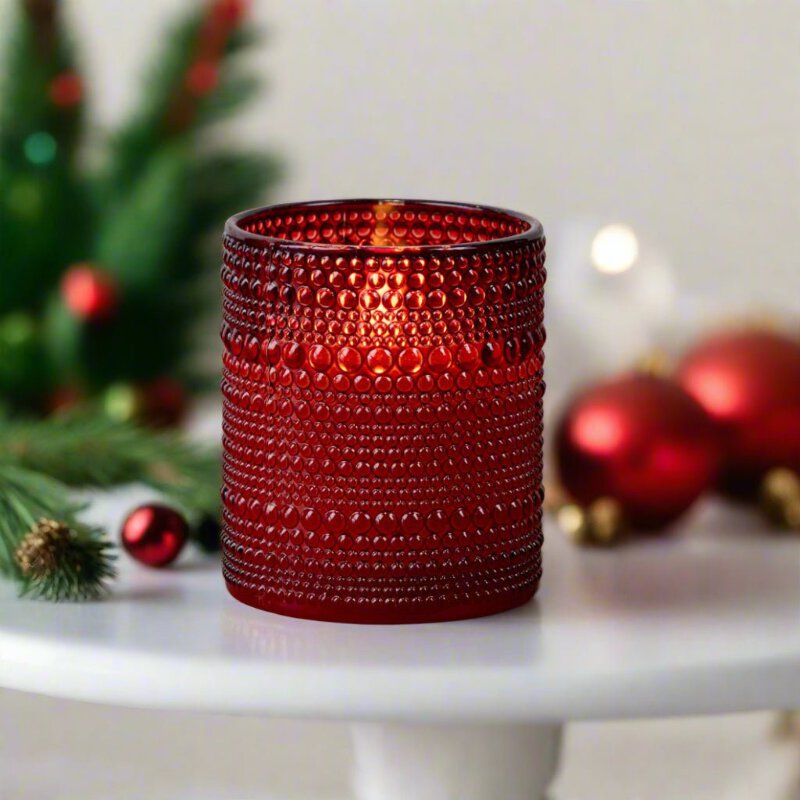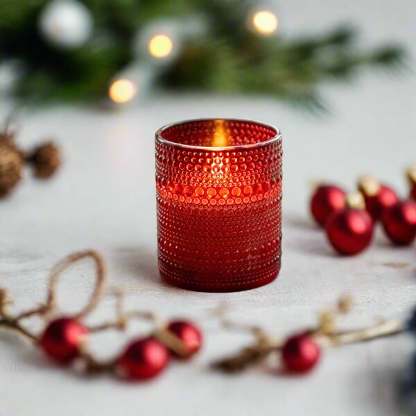 Add a touch of coziness and warmth to your home decor with this 4" Dotted Glass Jar 3D Flame Battery Candle .