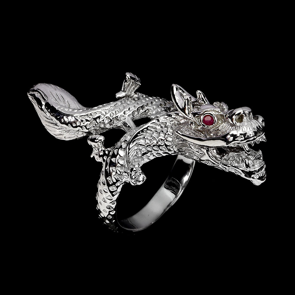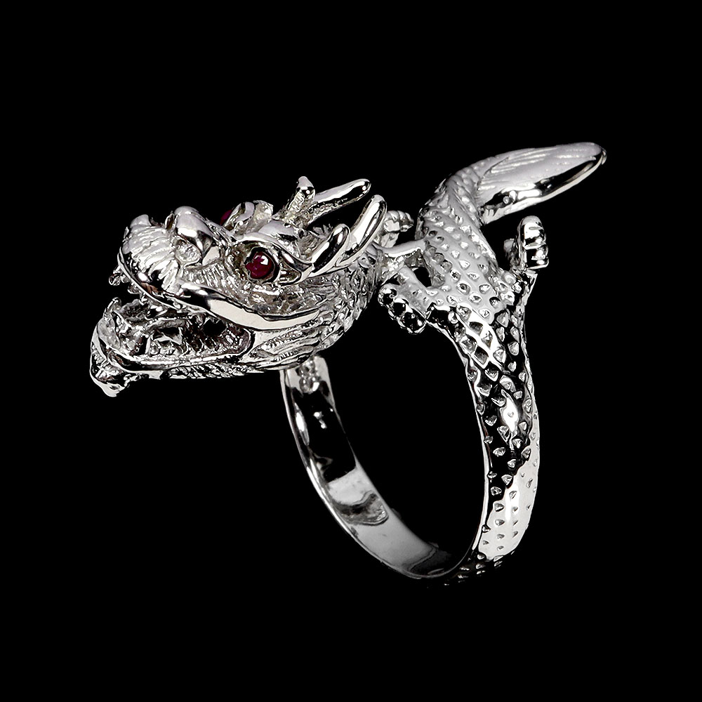 925 Sterling Silver Ring Round Ruby Natural Gemstone Jewelry Dragon Size 8
