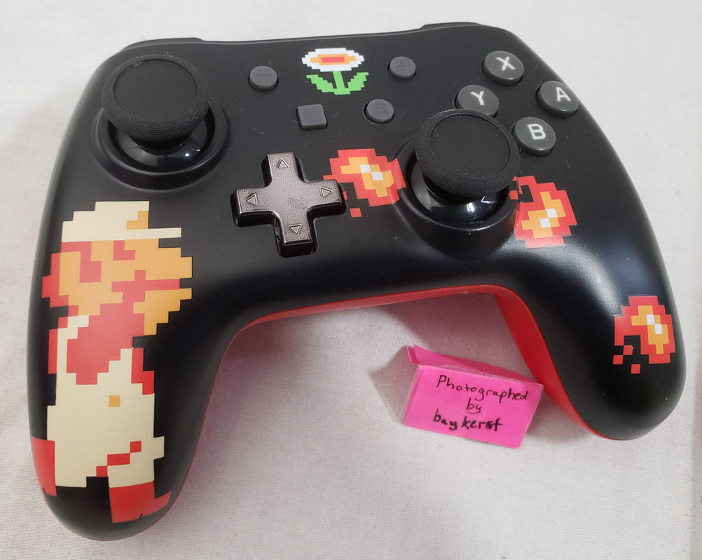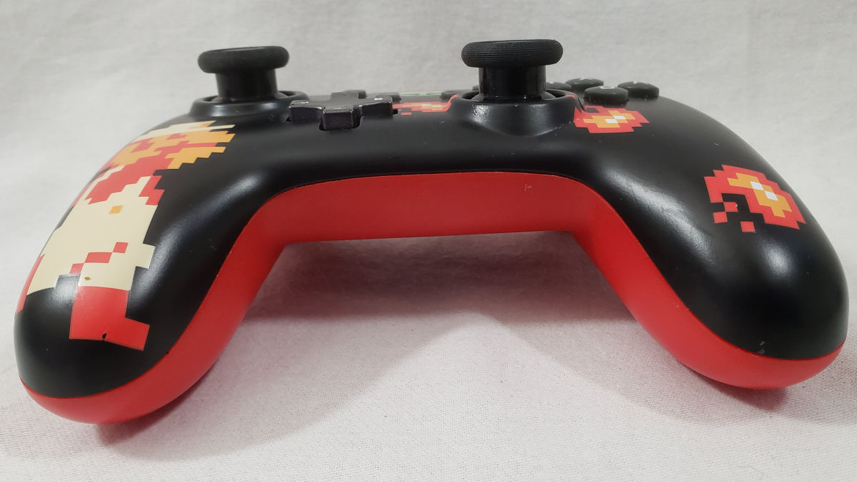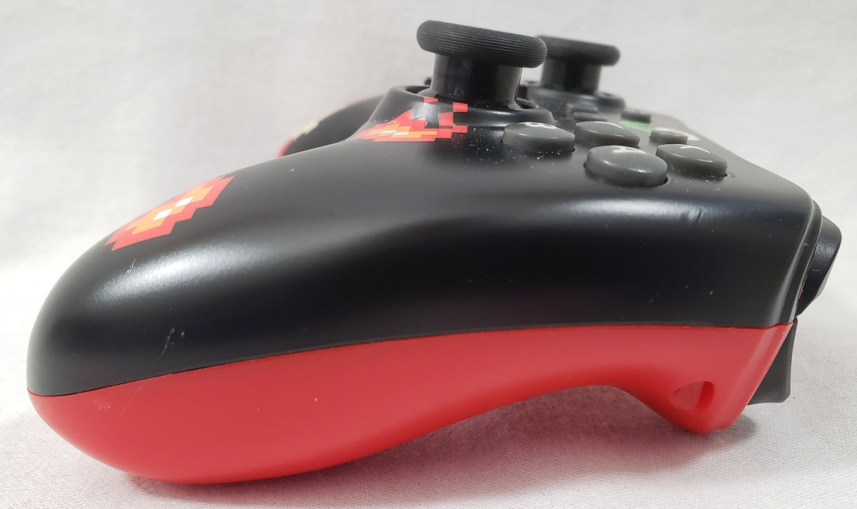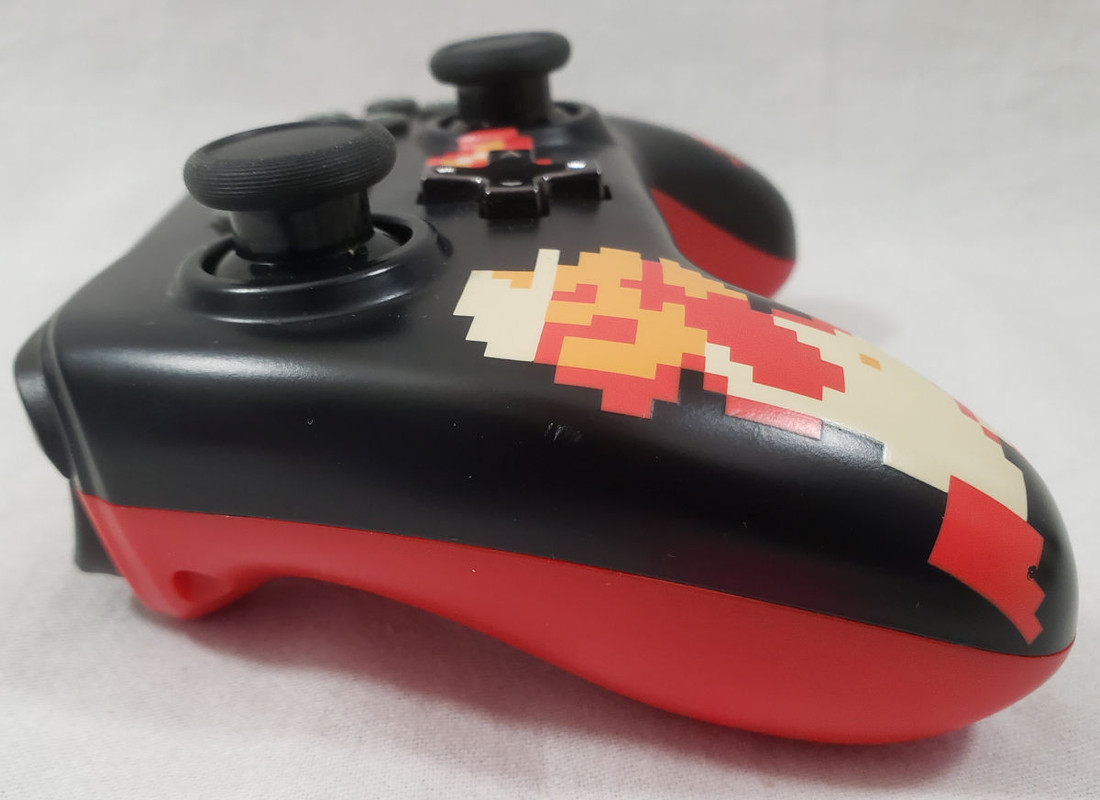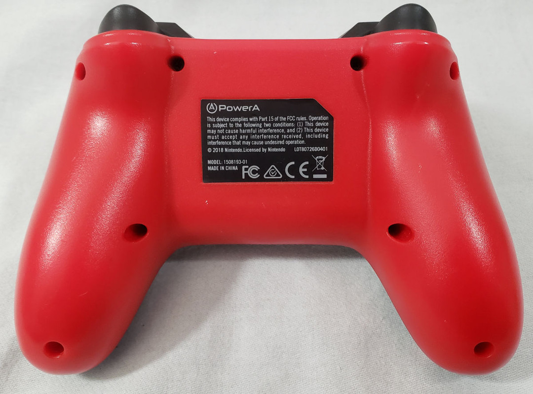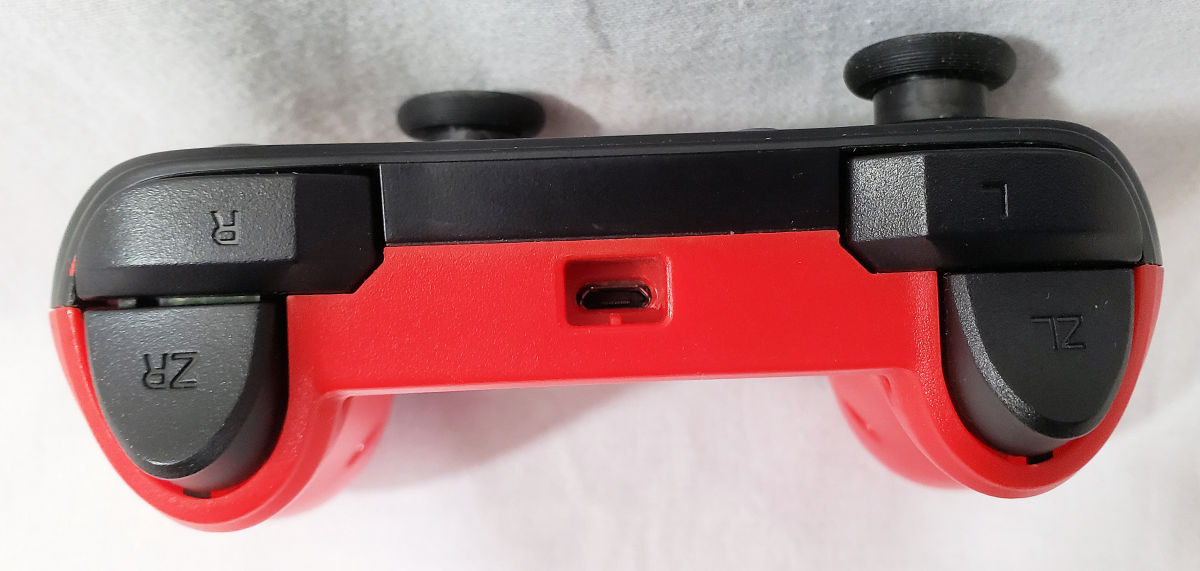 Nintendo Switch Enhanced Wired Controller (Power A 1508193-01) 8-Bit Super Mario Bros, Fire Suit Mario Design The controller has been cleaned inside and out. The controller works well. The controller requires a micro USB cable (not included). The PowerA micro USB cable has a notch to make it fit easily; however, the well in the back of the controller can be modified to fit most generic micro USB cables. Check out the pictures below for more detail. |