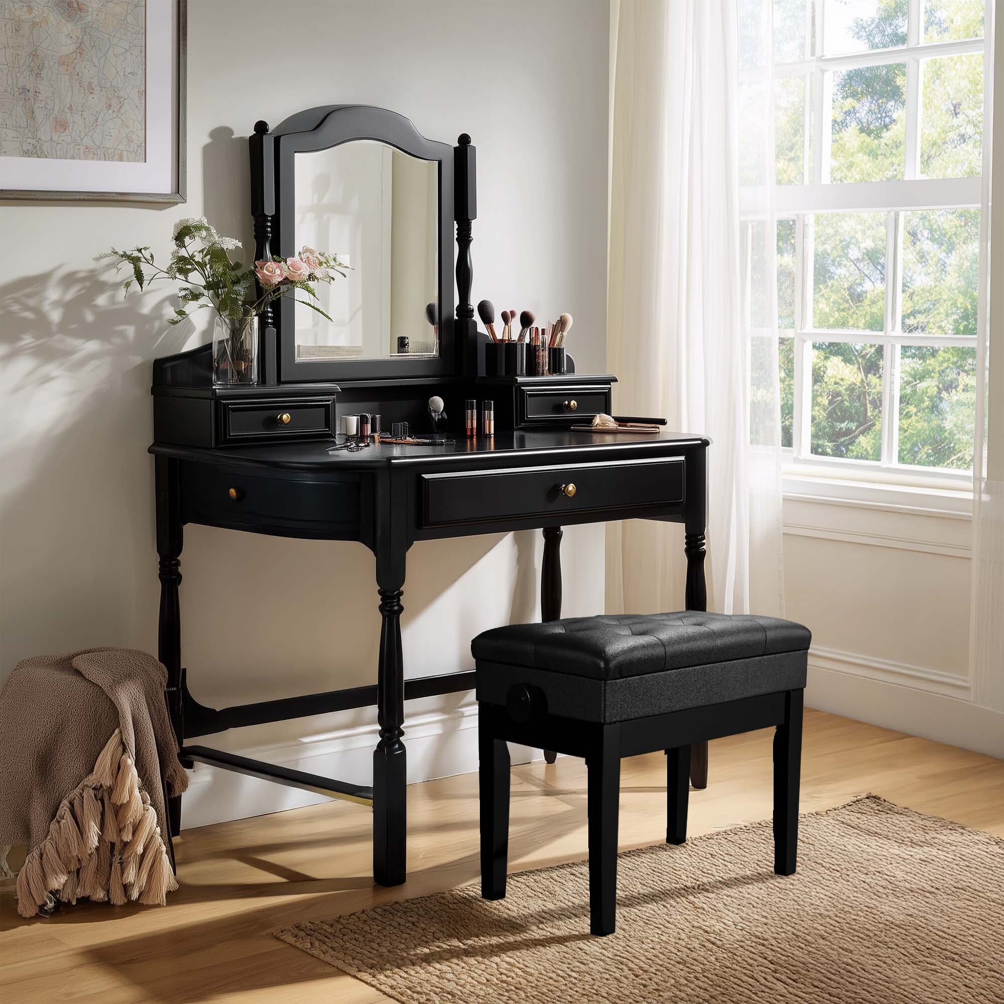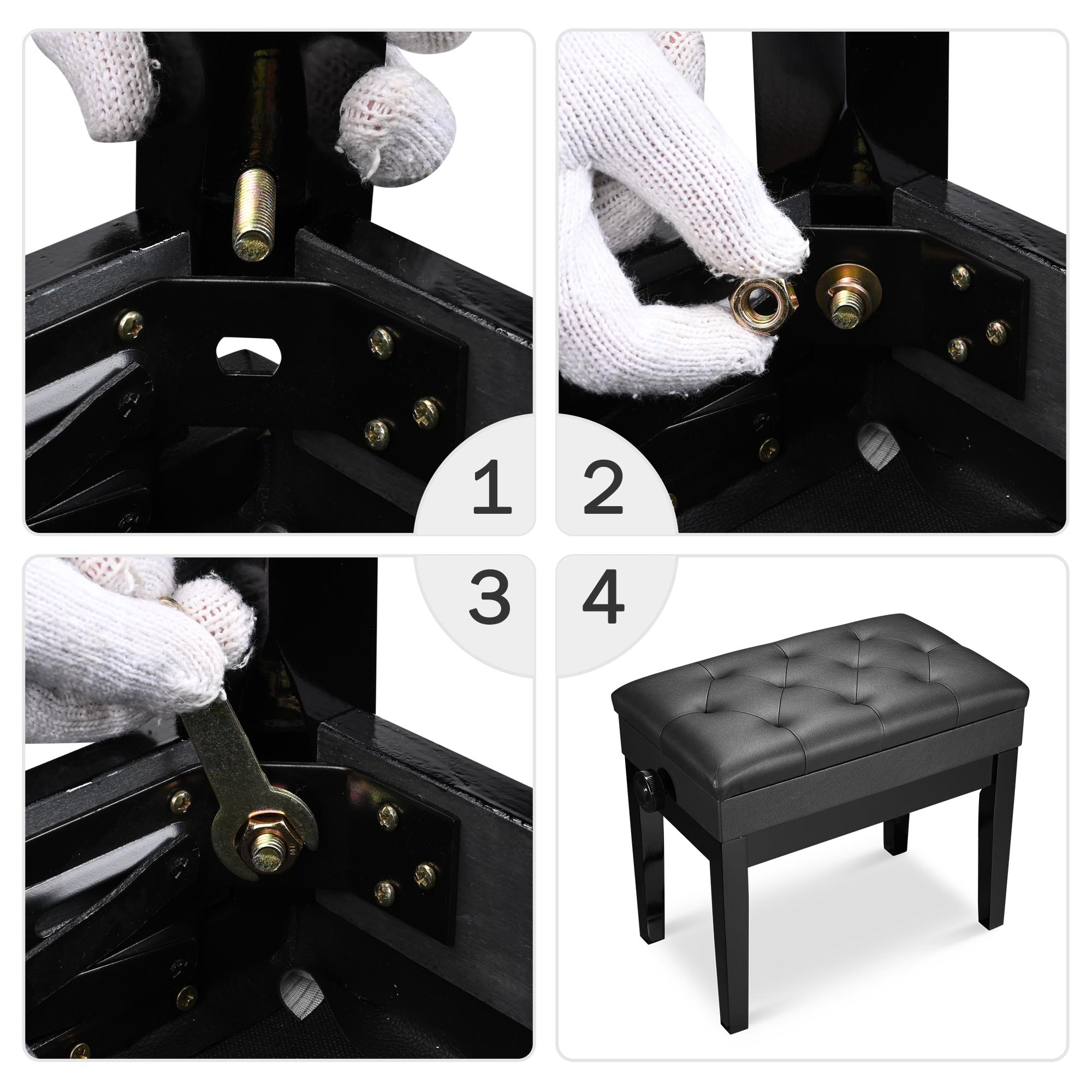 22"x13"x19" Concert Piano Bench with adjustable height serves excellently as piano bench, keyboard bench as well as vanity stool, which features comfort, durability and simplicity. It is a great choice for both beginners and professionals. It features compartment under the seat for holding sheet music and accessories.