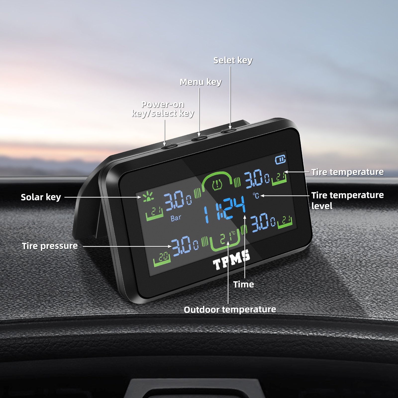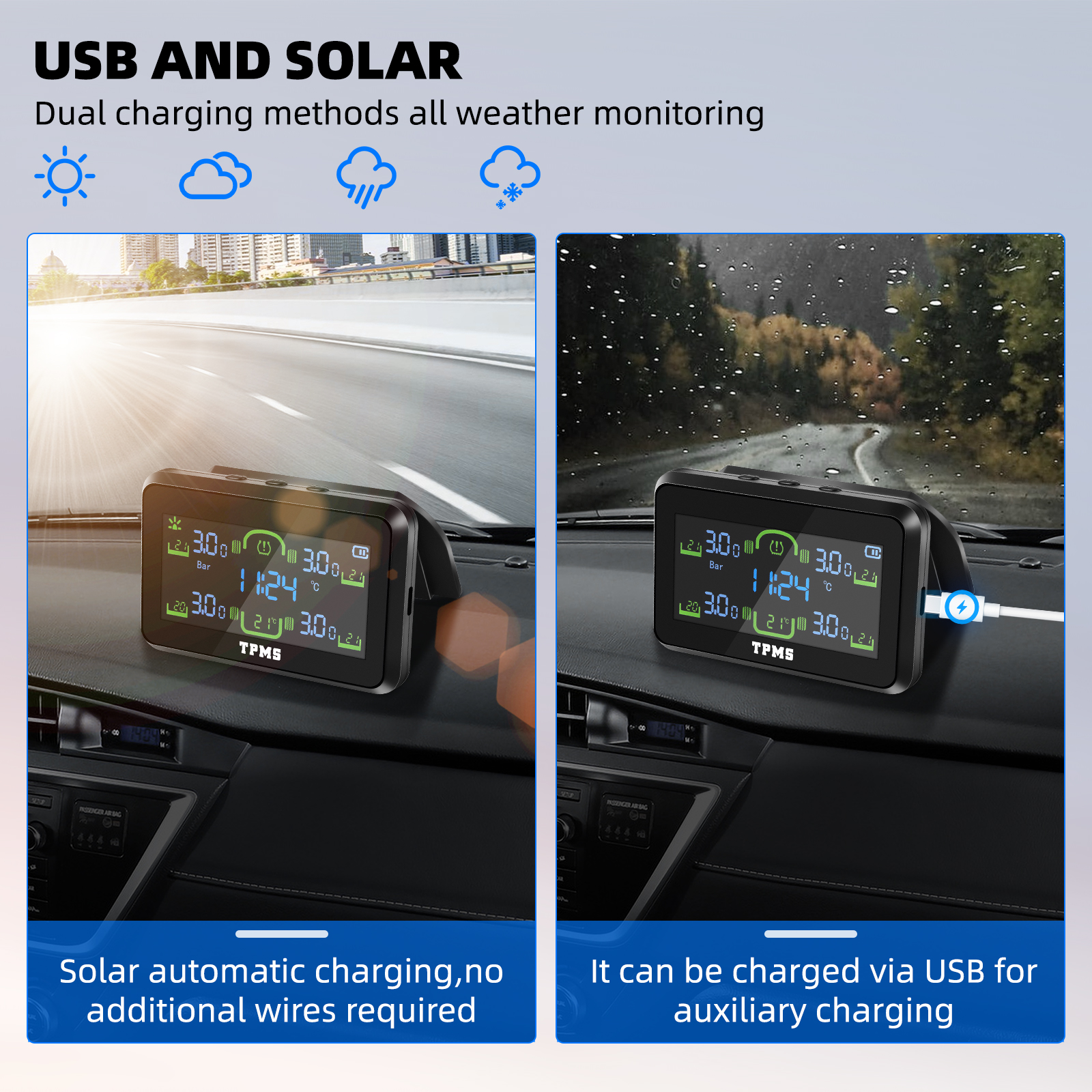 Solar & USB Dual-Charging TPMS