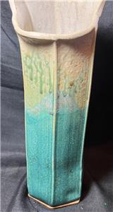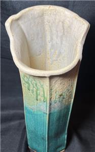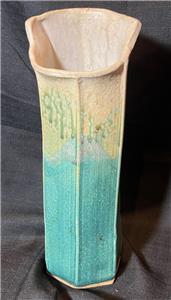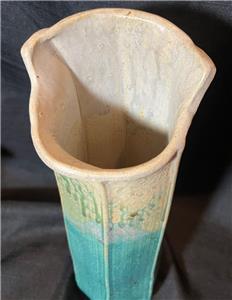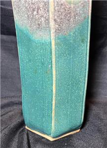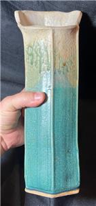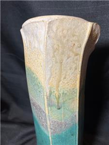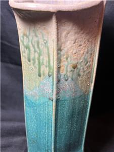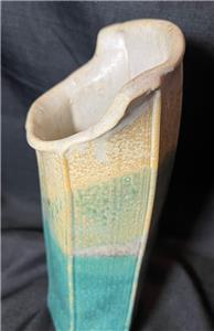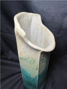This is nice original artist signed art pottery vase. The vase is made of hand formed clay fired and glazed pottery (see photos). The vase is American in origin and signed on the underside of the base by the artists: Wellman & Welsch and dated for 2005. The item has minimal wear (see photos and / or written description for the condition of this item). The item measures about 13 inches high, it is about 5 inches wide. A nicely made American art pottery signed vase for you to add to your collection.