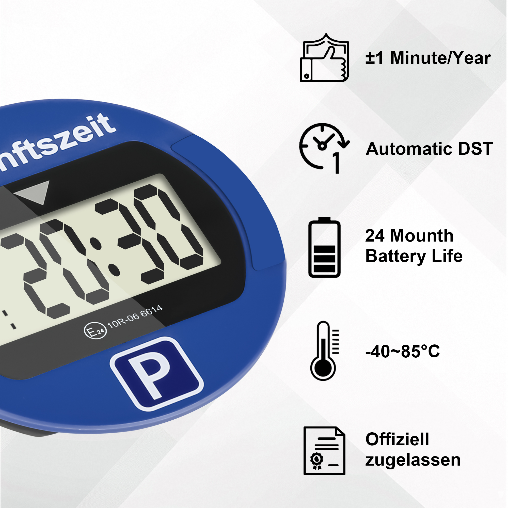 Elektronische Parkscheibe mit Zulassung fürs Auto - Automatische Digitale Parkscheibe Elektrisch mit Zulassung vom Kraftfahrt-Bundesamt nach StVO - Elektrische Parkuhr Auto zugelassen
